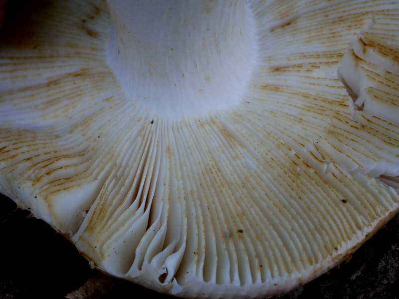 mit Sicherheit ist dein Fund kein Morsetäubling, denn der wäre im Grundsatz gelbhütig, wobei das Gelb durch den violettrosa Hutschleim gebrochen wird und dann sehr trübe aussieht. Was das dagegen ist (oder auch nur in welche Sektion es gehört) ist bei dieser rudimentären Datenlage nicht ansatzweise zu sagen. Ein solch starkes Gilben/Bräunen der Lamellenschneiden hättest du etwa bei Heringstäublingen, aber auch bei bestimmten Tenellae, aber natürlich noch bei Einzelarten anderer Sektionen.