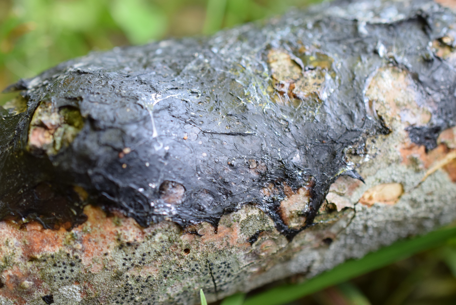 Habe noch ein komische ding gefunden , erinnert (Form und glänzende Oberfläche) an Exidia pithya Teerdrüsling aber den wachst an Nadelholz in mein fall gehet um Hartholz - vertrocknete Buchenast . Diatrype Stigma ist ähnlich aber meine das ist nicht .