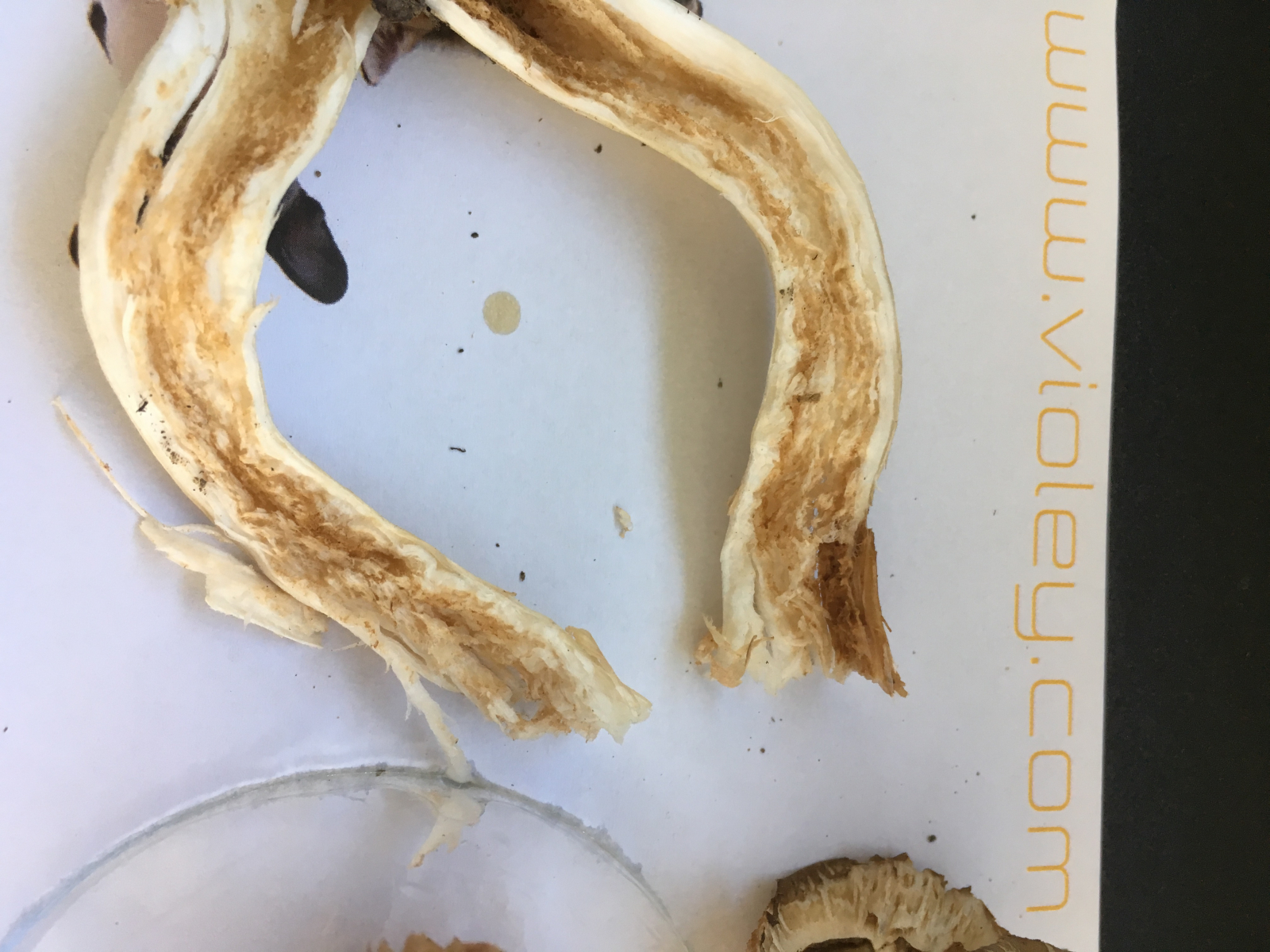 Eine Besichtigung der Fruchtkörper vor Ort brachte leider nur noch größtenteils exikkiertes Material zum Vorschein. Einem halbwegs brauchbarer Frk. konnte man noch den mehligen/gurkigen Geruch entlocken.