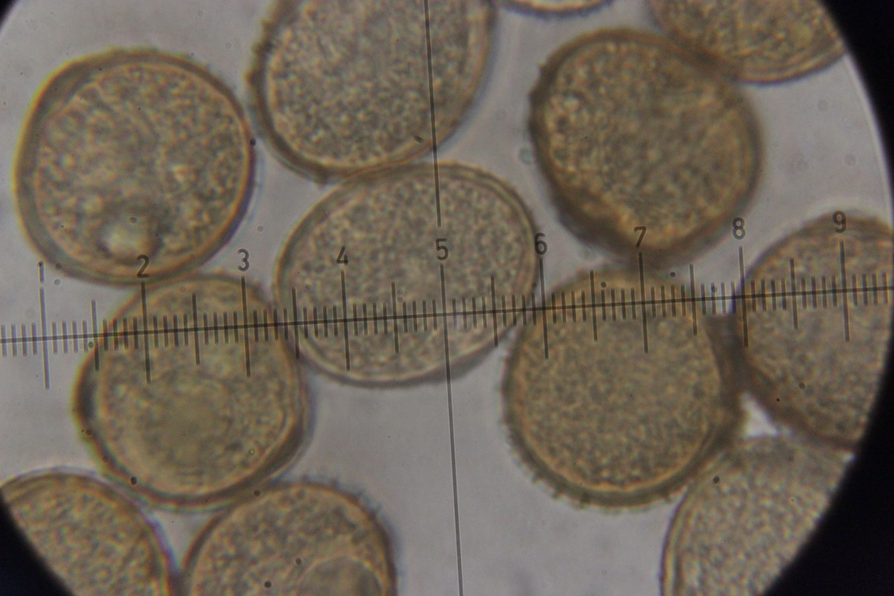 8. Puccinia urticata s.l. ex Carex pendula. Die Uredosporen, bei denen man Keimporen erkennen konnten, hatten in der Mehrzahl derer drei. Außerdem waren die Uredien eher zimtbraun als rostfarben.