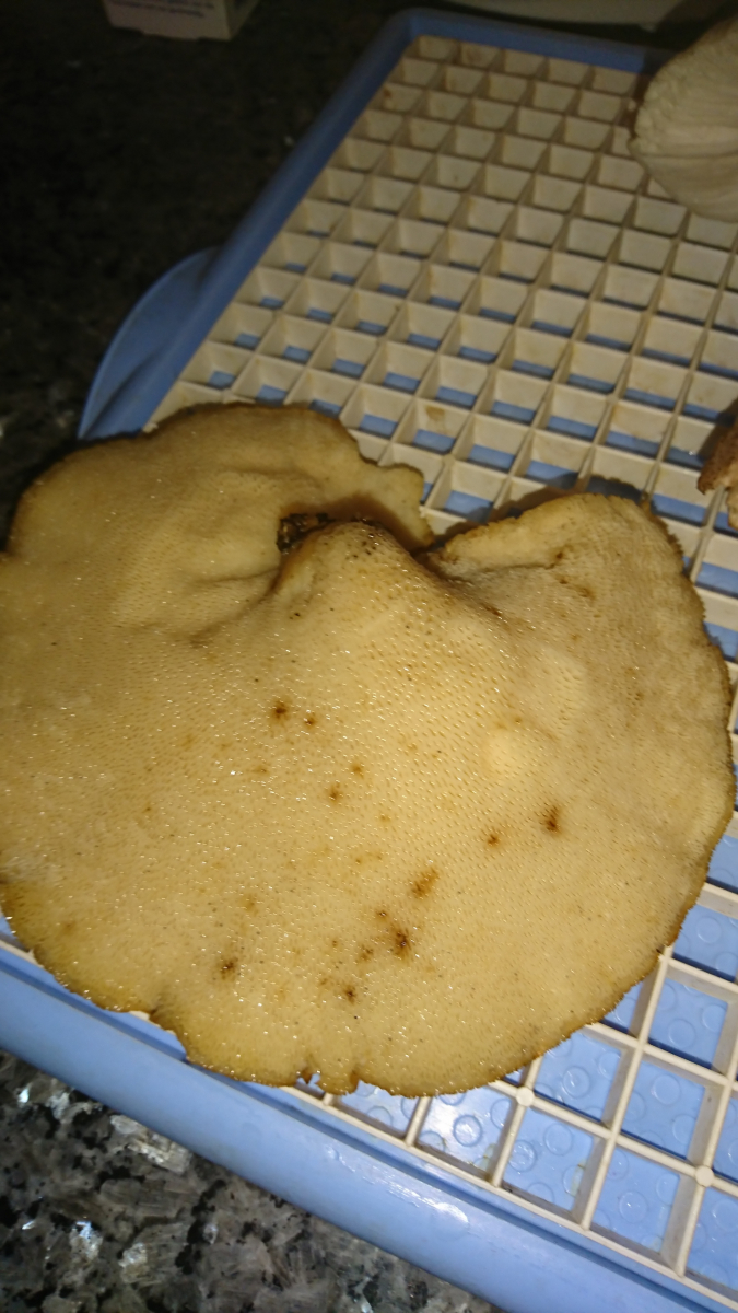 Heute durch den Wald habe ich gefunden eine Risse Perpilz. So was habe ich nicht gesehen. Wie eine richtig gewachsene Stein Pilz. Weiter noch eine schuppiger PORLING, eine Steinpilze und glaube ich eine ockertaubling in doppel Pack.