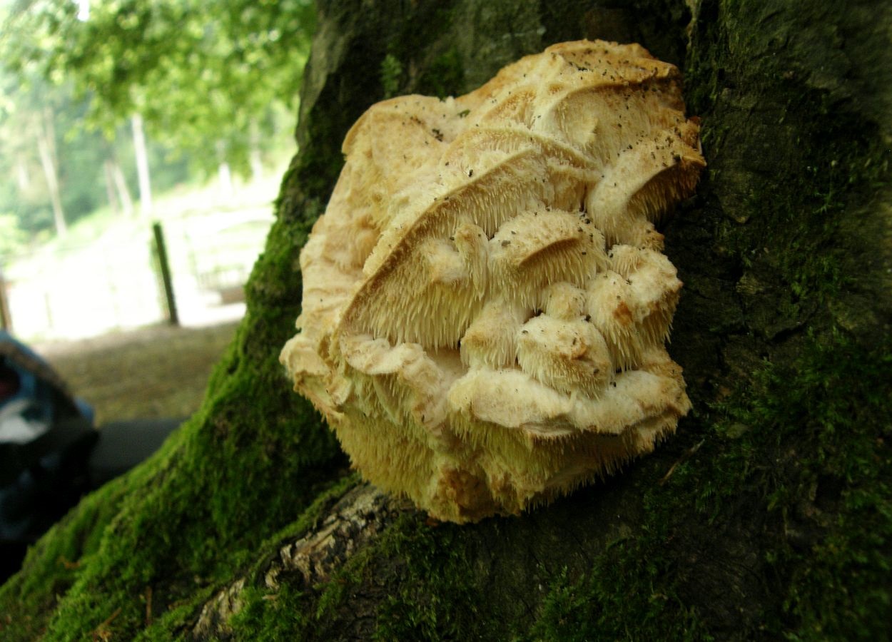 Dorniger Stachelbart (Hericium cirrhatum) an Hainbuche, Einzelgänger: