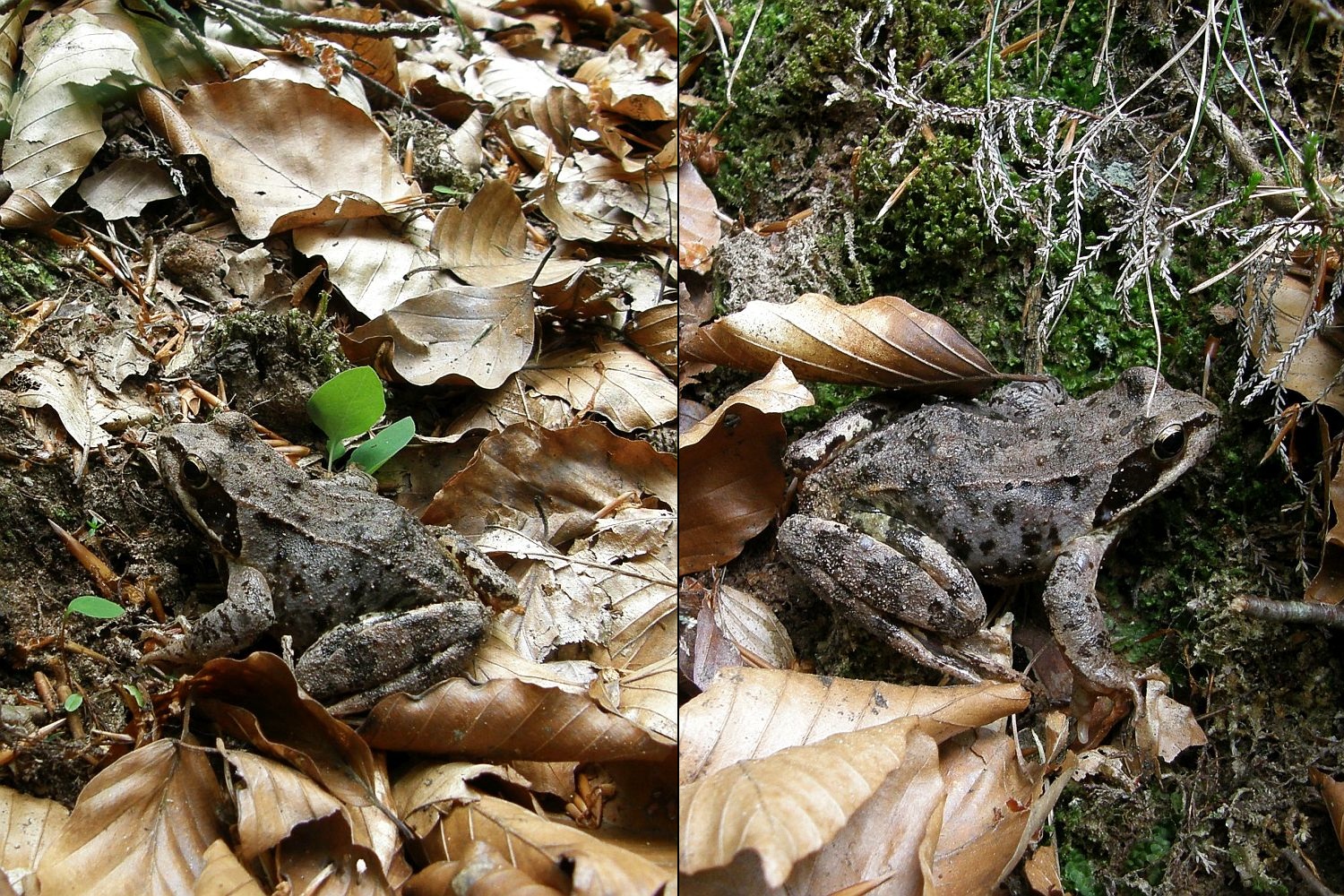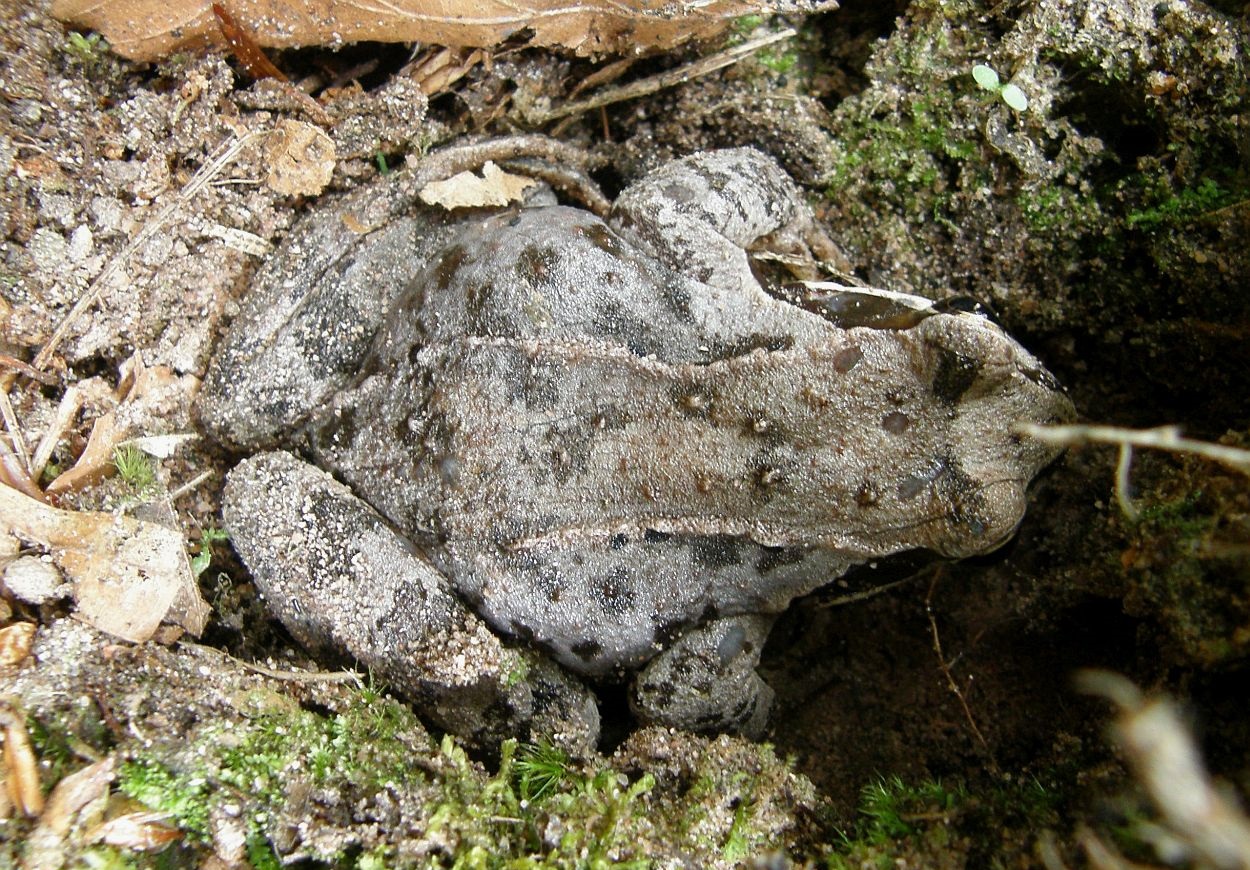 Und ein arg komisch gefärbter Grasfrosch (Rana cf temporaria):