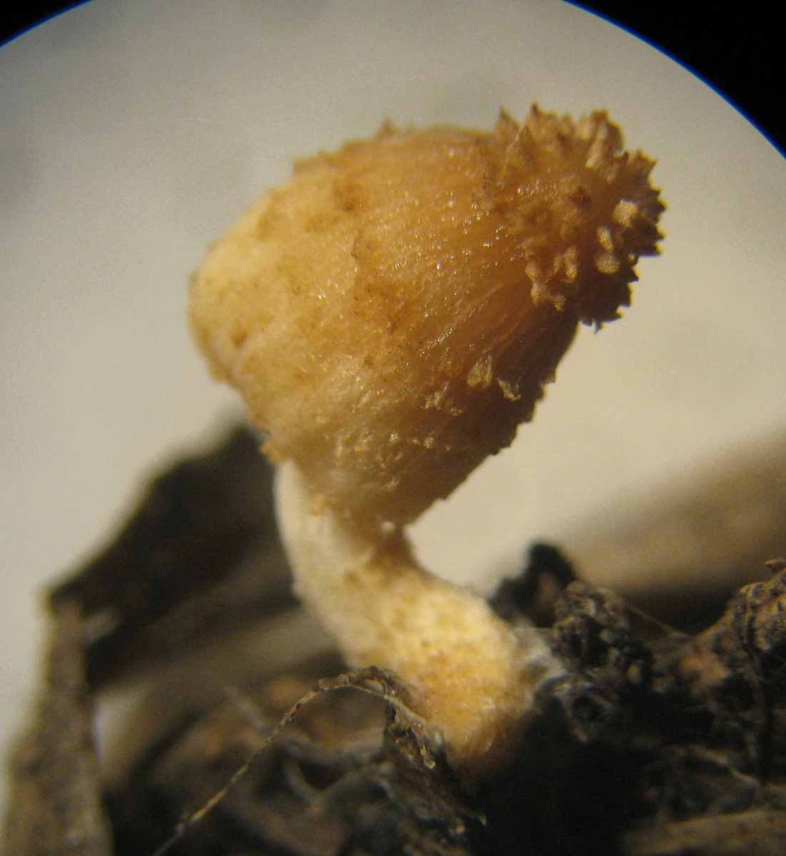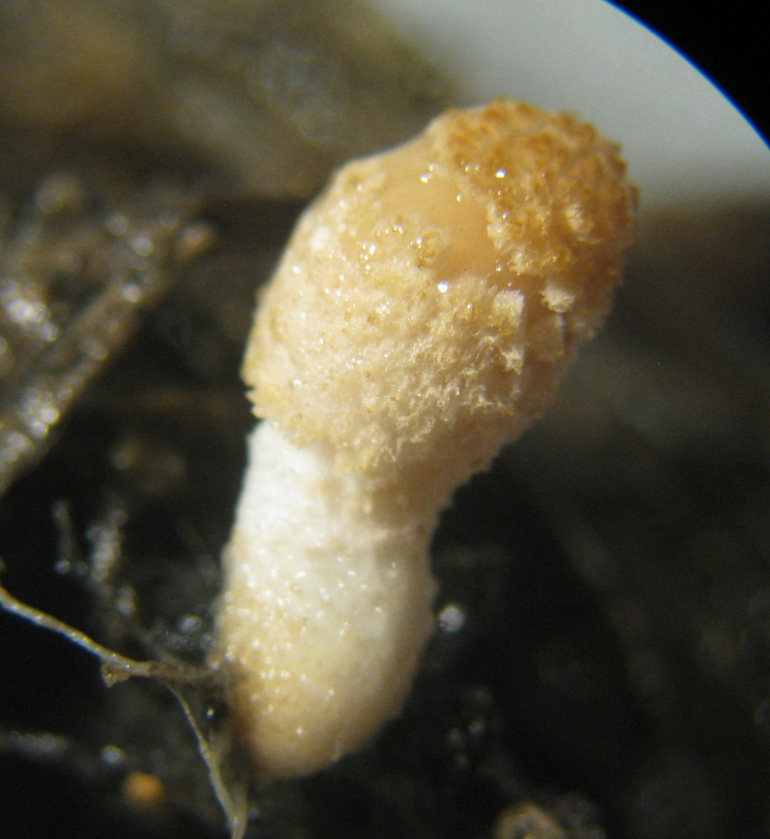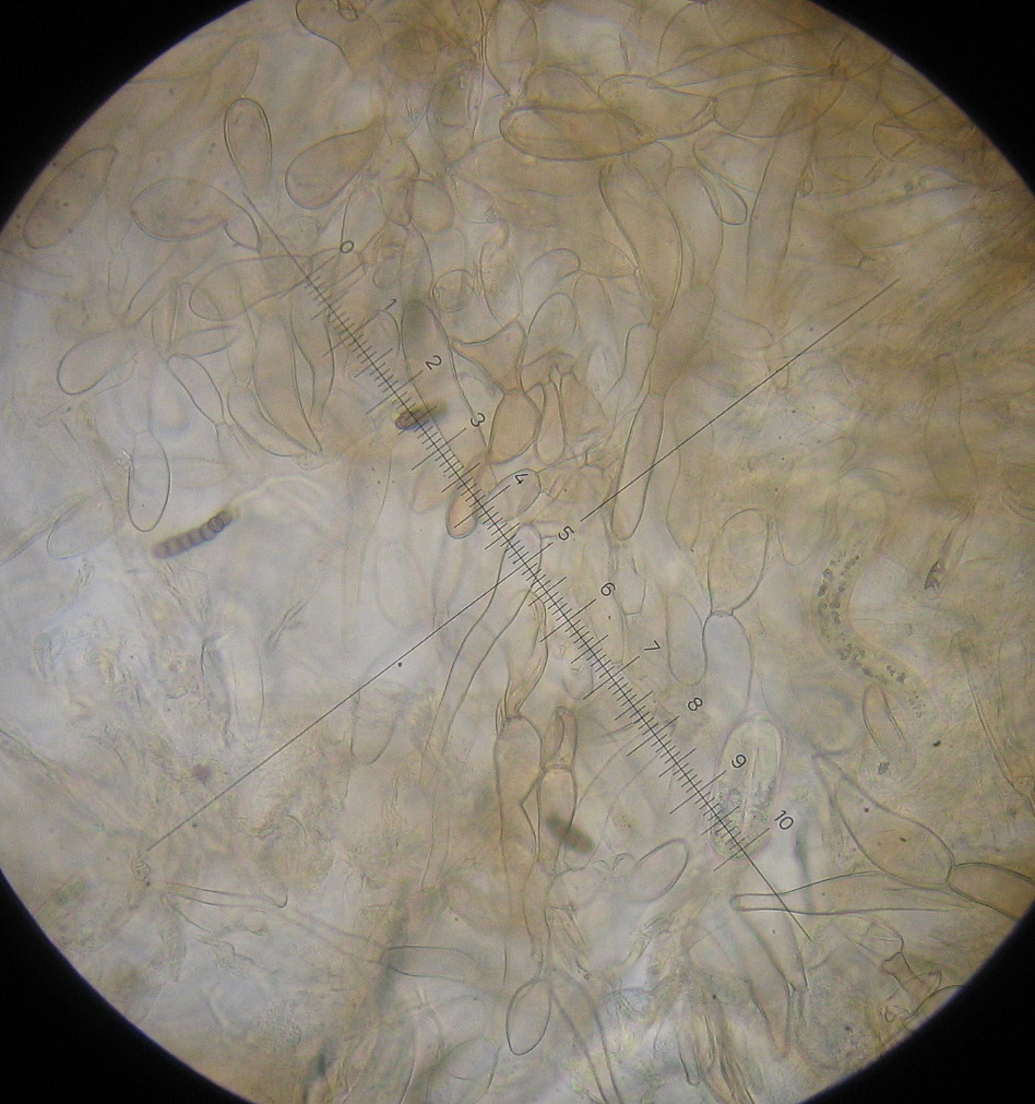 4cm hoch, Stiel weiß, glatt, Basis zylindrisch, keine Kaulozystiden gesehen