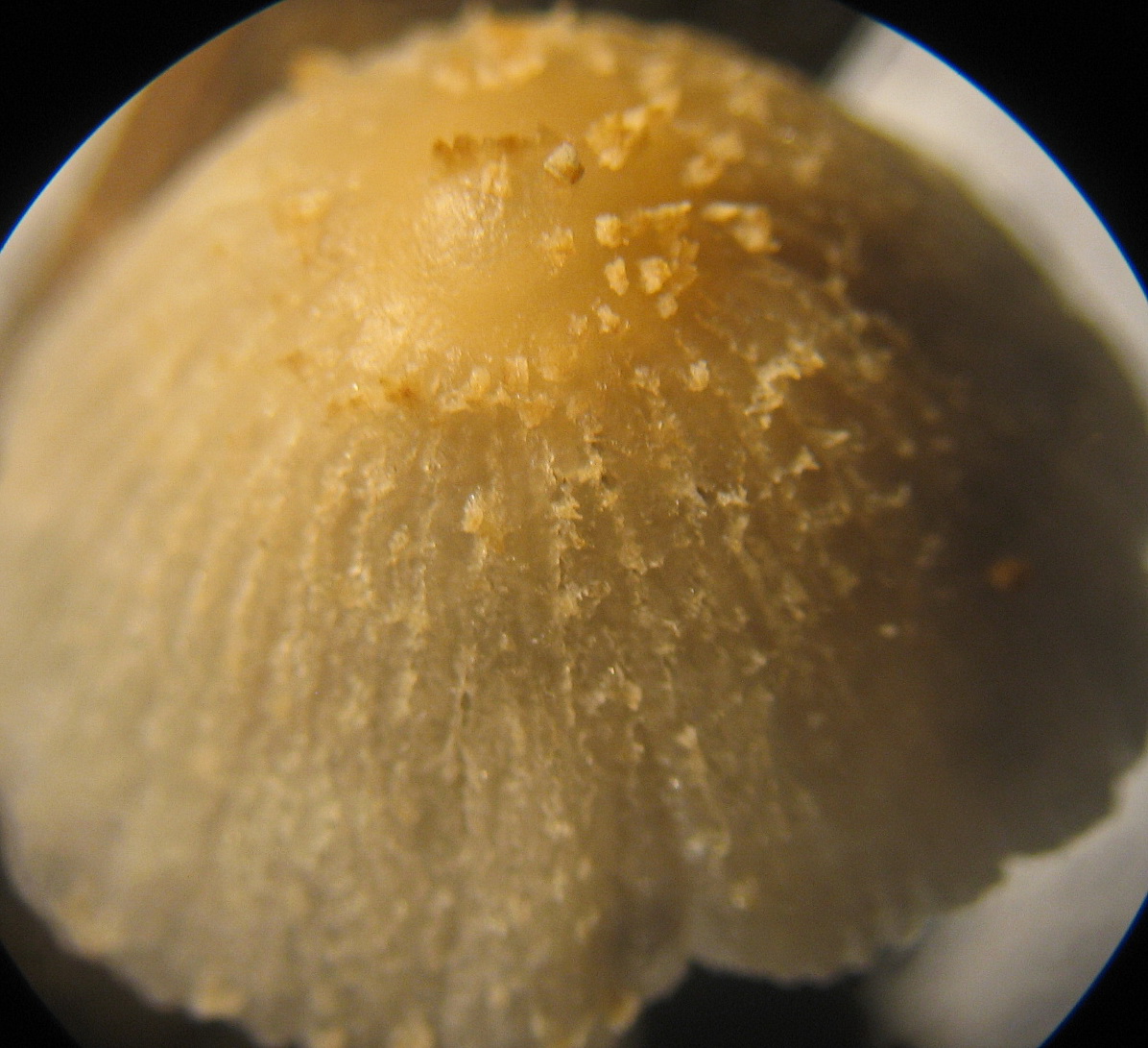 Hut mit bräunlichen Velumschuppen, Rand leicht gerieft, blasser als die Hutmitte