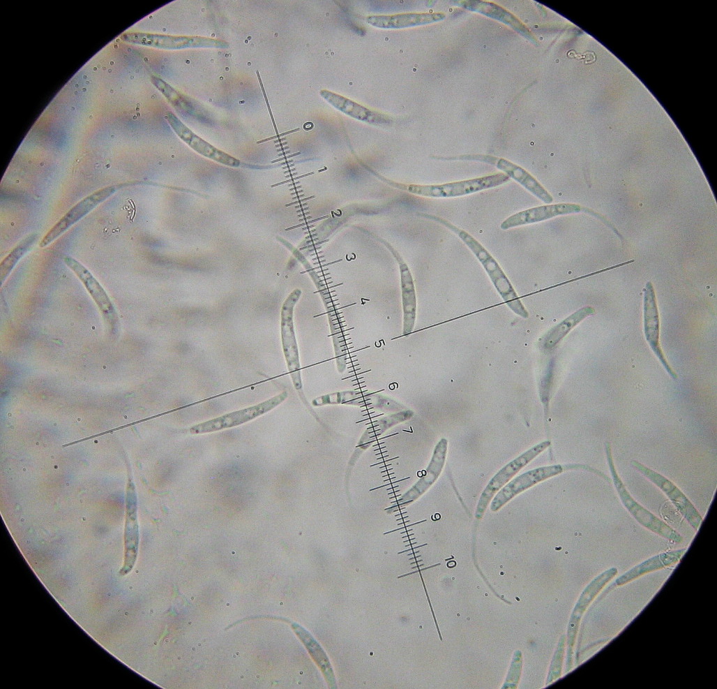 Sporen 15-28 x 2-3µ, mit bis zu 35µ langen zugespitzten Anhängsel ( basal?),