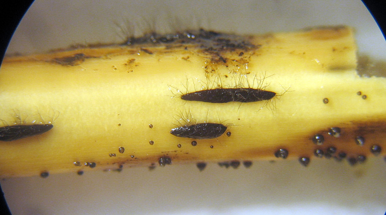 -ich denke das Langgestreckte ist ein Sclerotium- aber von was ?