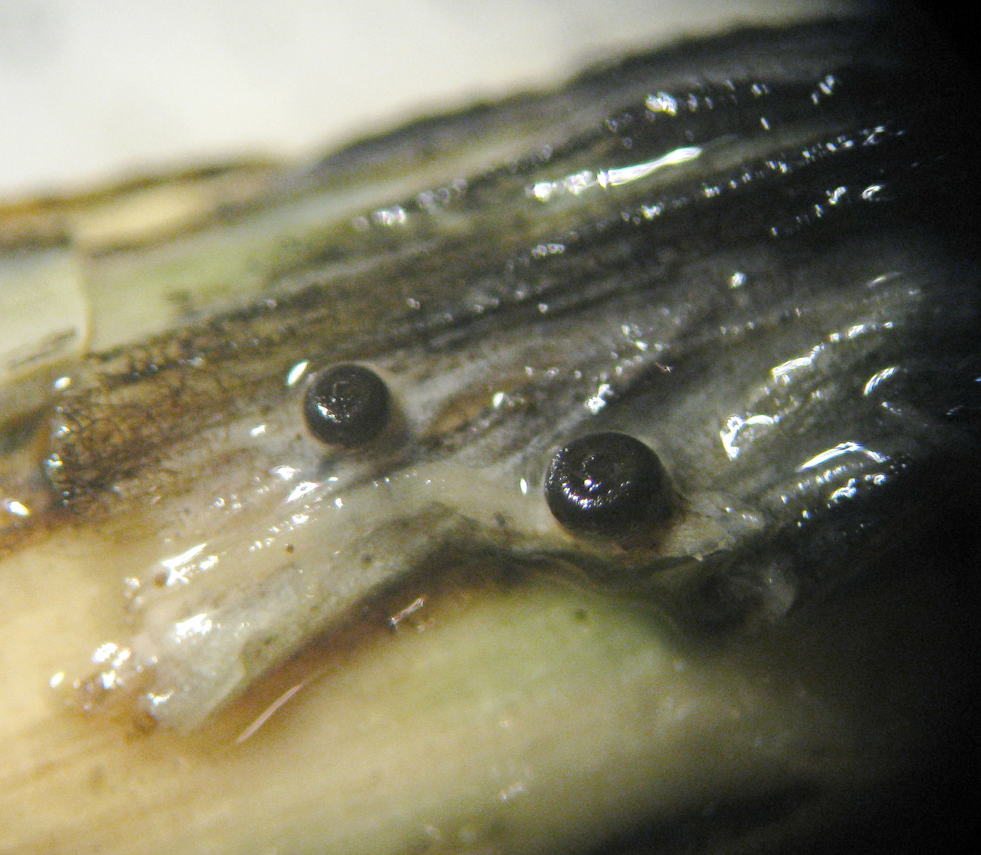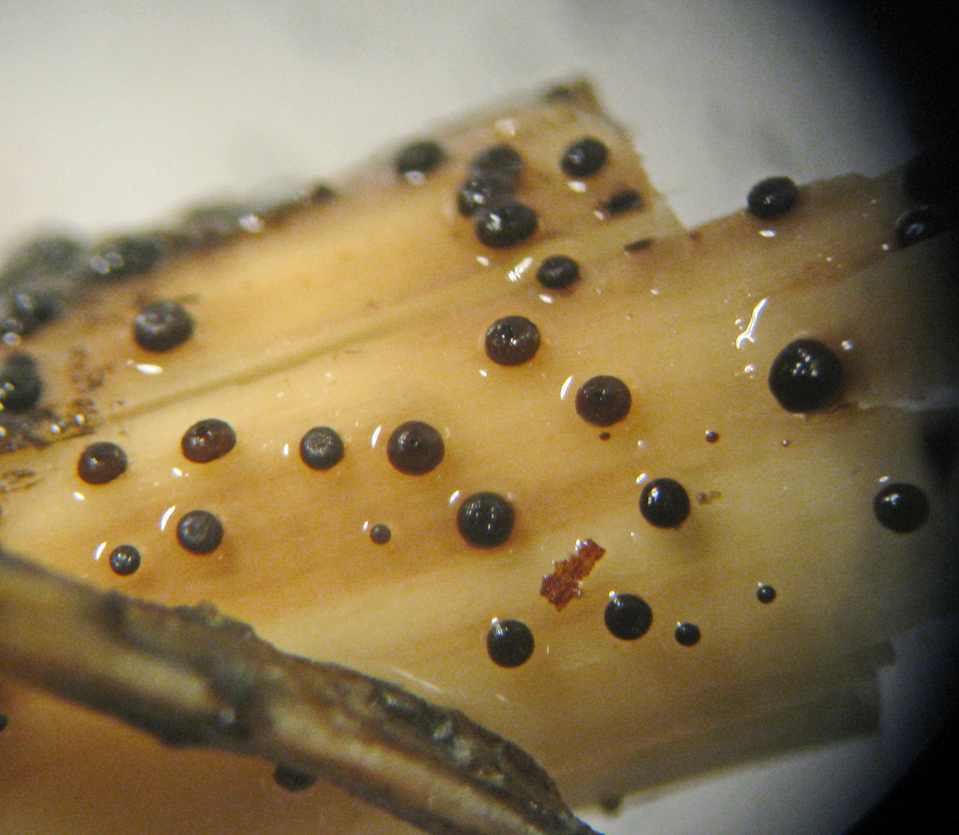 -ich denke das Langgestreckte ist ein Sclerotium- aber von was ?