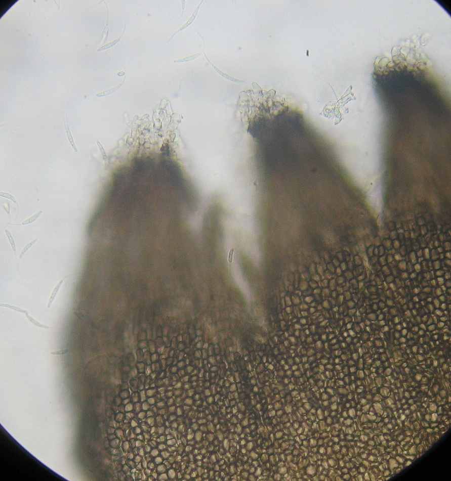 Sporen 15-28 x 2-3µ, mit bis zu 35µ langen zugespitzten Anhängsel ( basal?),