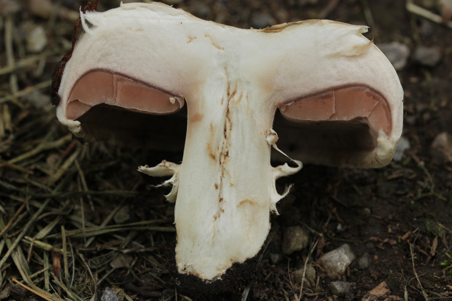 11. Agaricus sp. aus der Sektion Bivelares. Auffällig die Hutform. Im ersten Moment dachte ich, da wäre irgendein Nupsel im Waldboden, der nur wie ein Pilz aussieht.