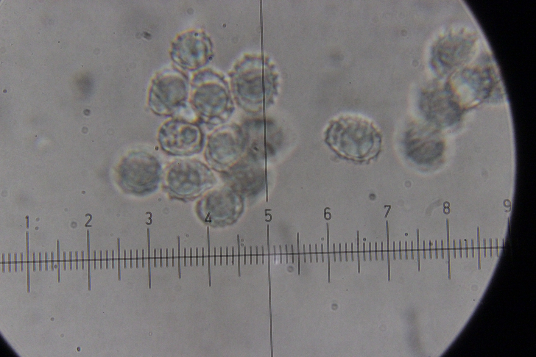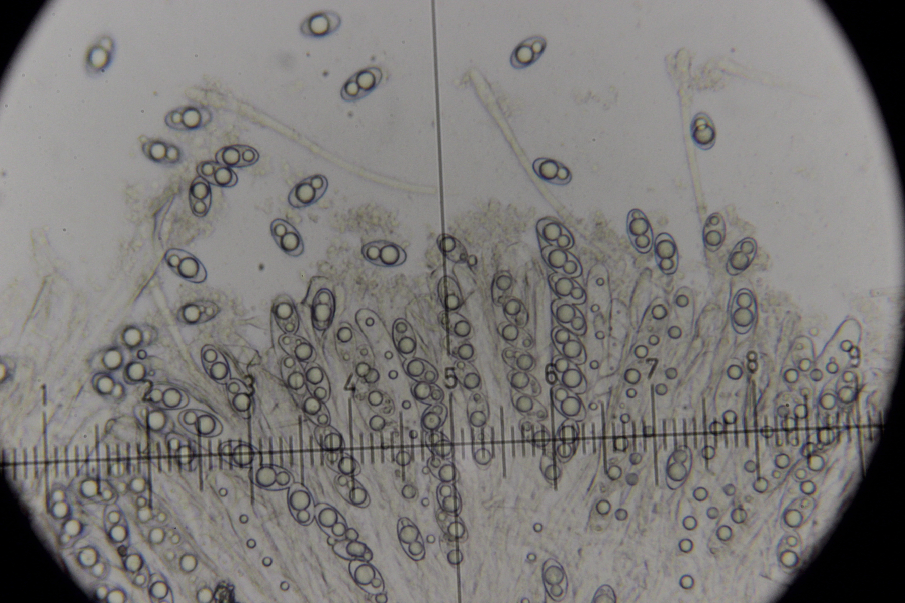 4. Lactarius sp. unter Rotbuche. Geruch gummiartig, Geschmack mild. Er darf jetzt gerade aussporen.