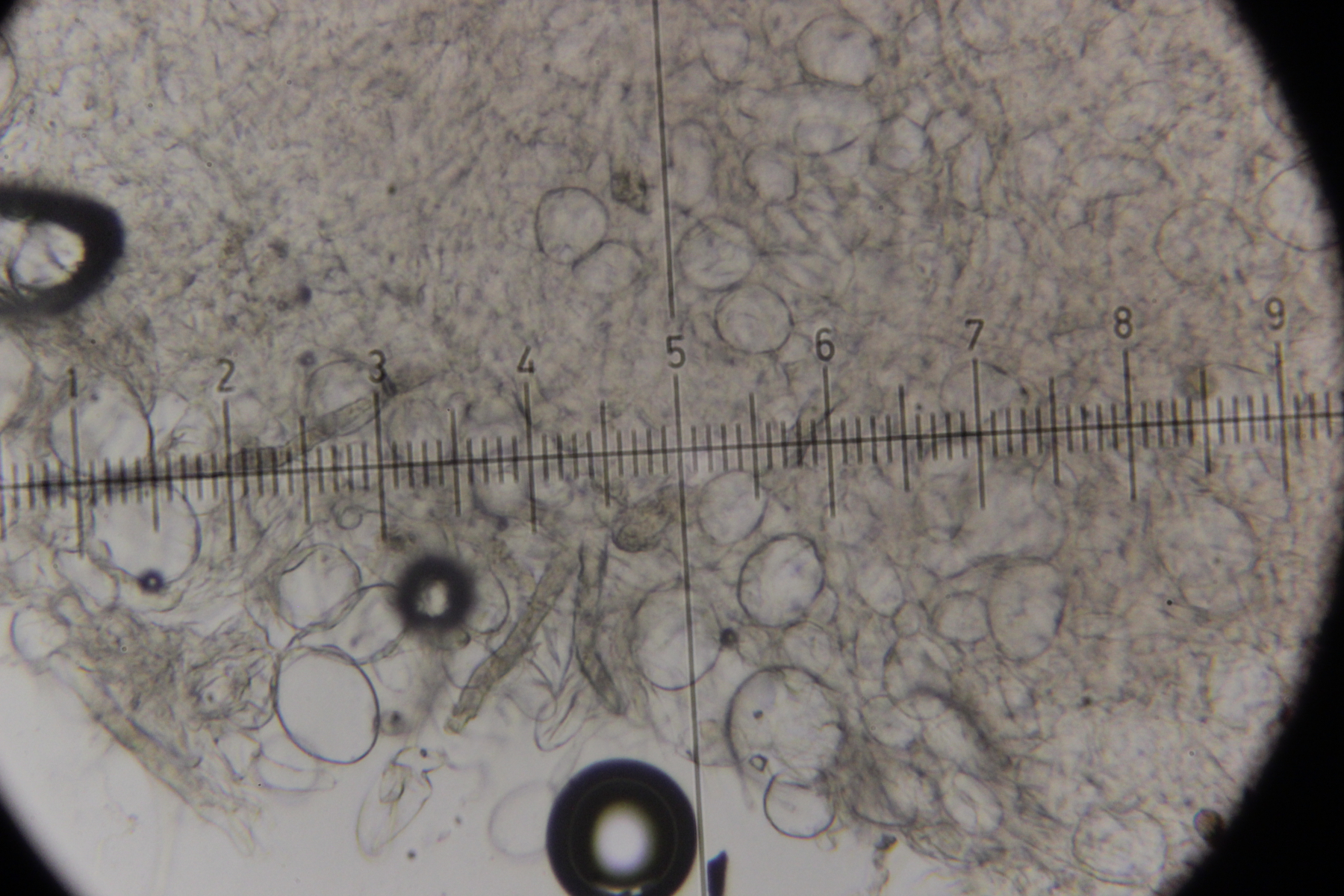 9. Scutellinia sp. Soll auch gerade aussporen, macht das aber irgendwie nicht so, wie das in Ralfs Geheimtrick-Beitrag beschrieben ist...