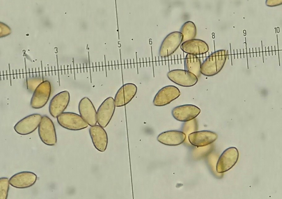 Sporen: 8-10 (11) * 5-6 ym, Q um 1,8, Sp teilweise mit Plage und nicht glatt eher feinwarzig