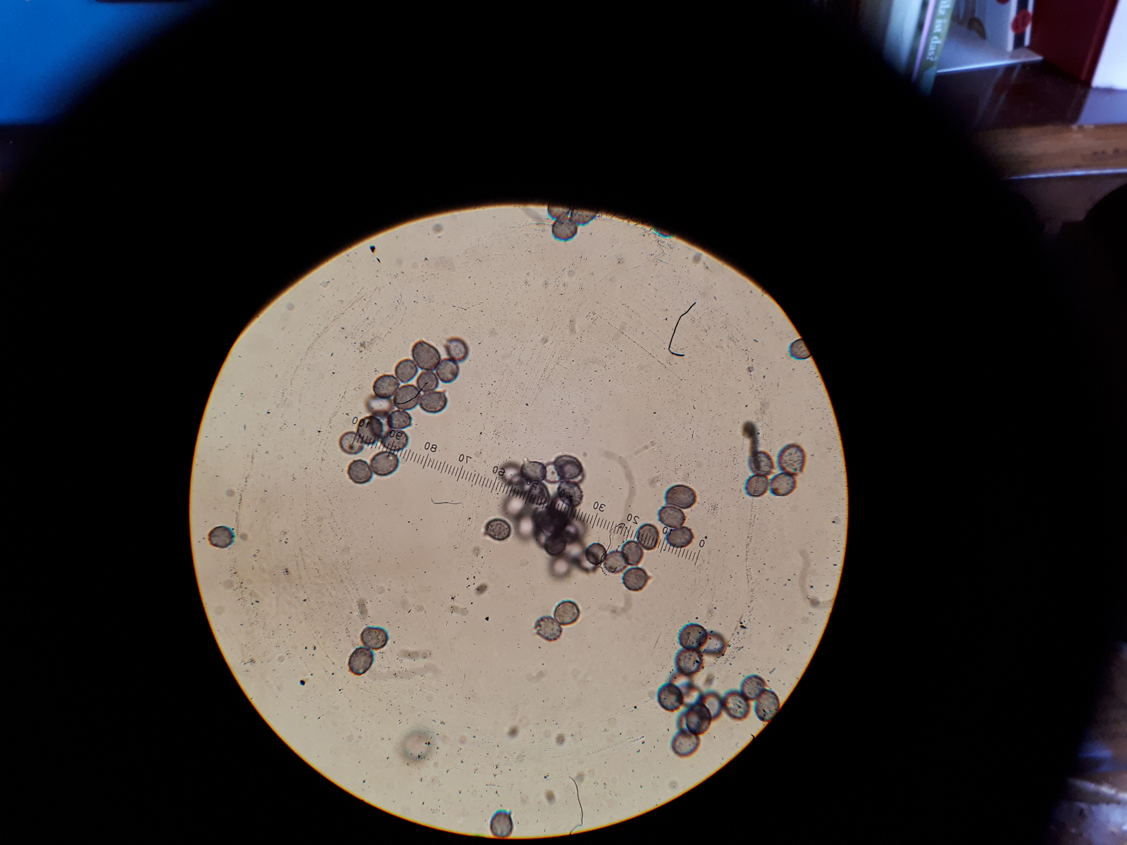 Was du zeigst, sind dagegen die Lamellen in Wasser und die Sporen in "irgendwas", das bringt eher nichts. Außerdem könntest du mal dein Objektiv reinigen, das ist ja brutal verdreckt.