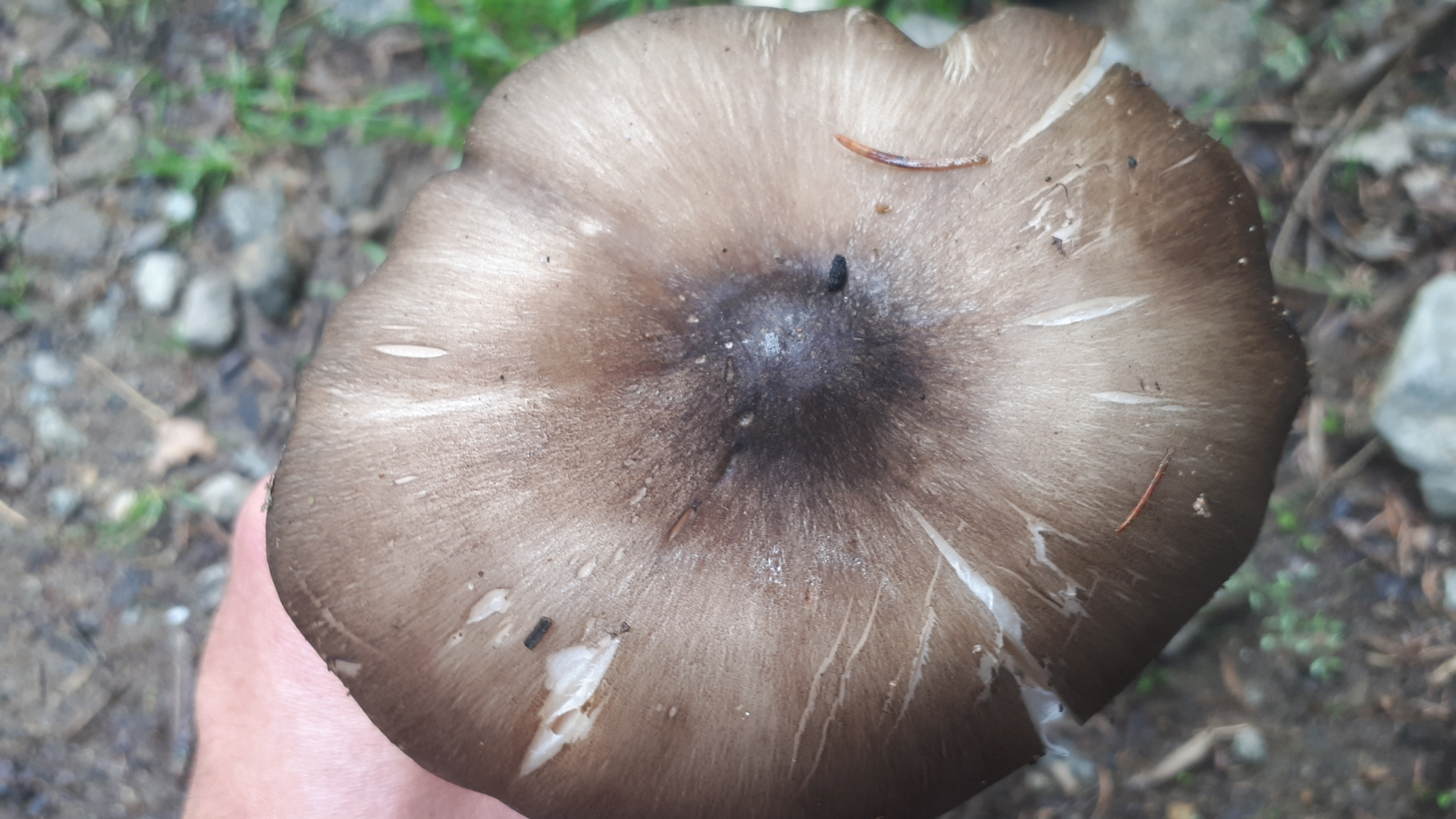 Der Hut von einem Breitblatt-Rübling ist so richtig schön radial rissig. Diese Hüte haben kaum Fruchfleisch und bestehen quasi fast nur aus Huthaut (oft in genau dieser Optik wie auf Deinen Bildern) und den breiten Lamellen (namensgebend) zwischen denen man schöne queraderige Verbindungen finden kann.