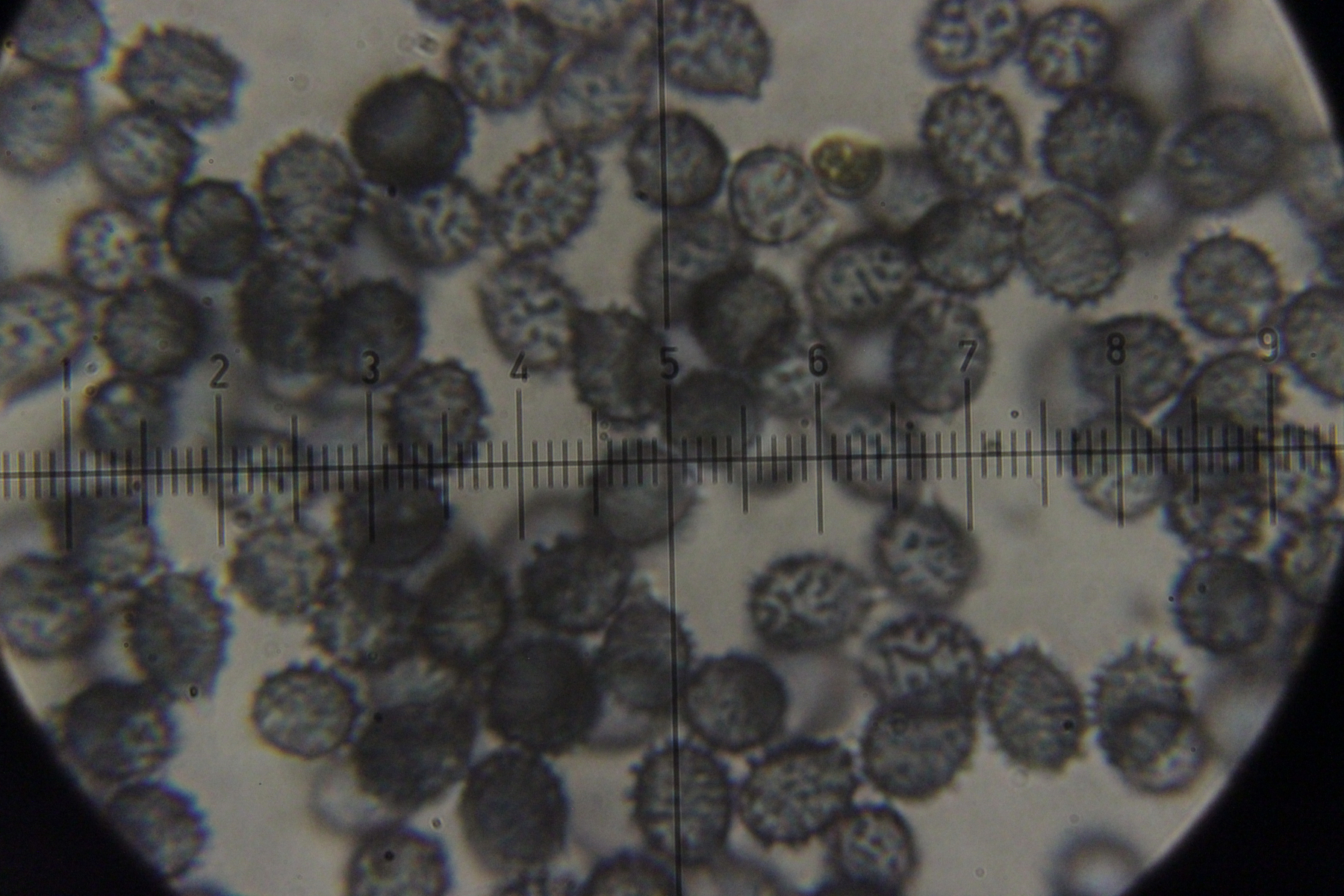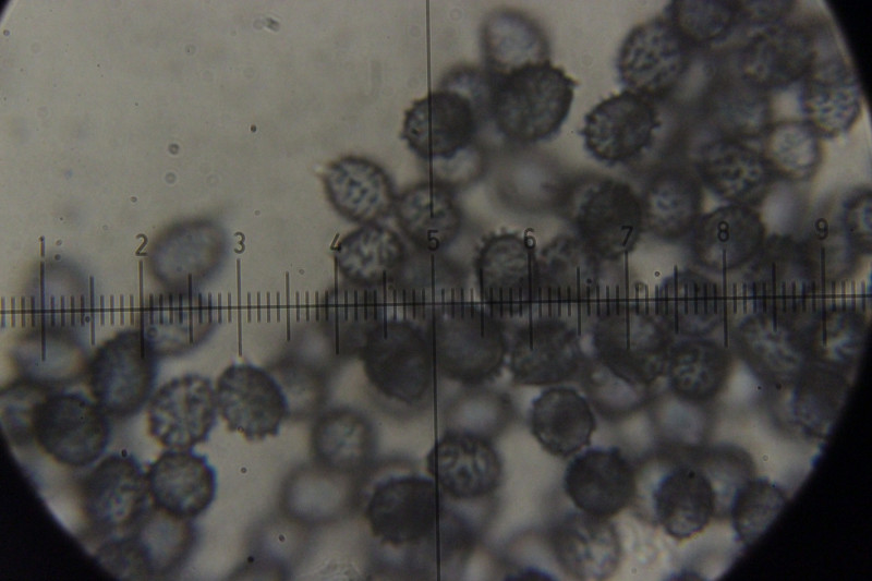 Sporengröße (7.5 +- 0.4) µm x (5.8 +- 0.3) µm