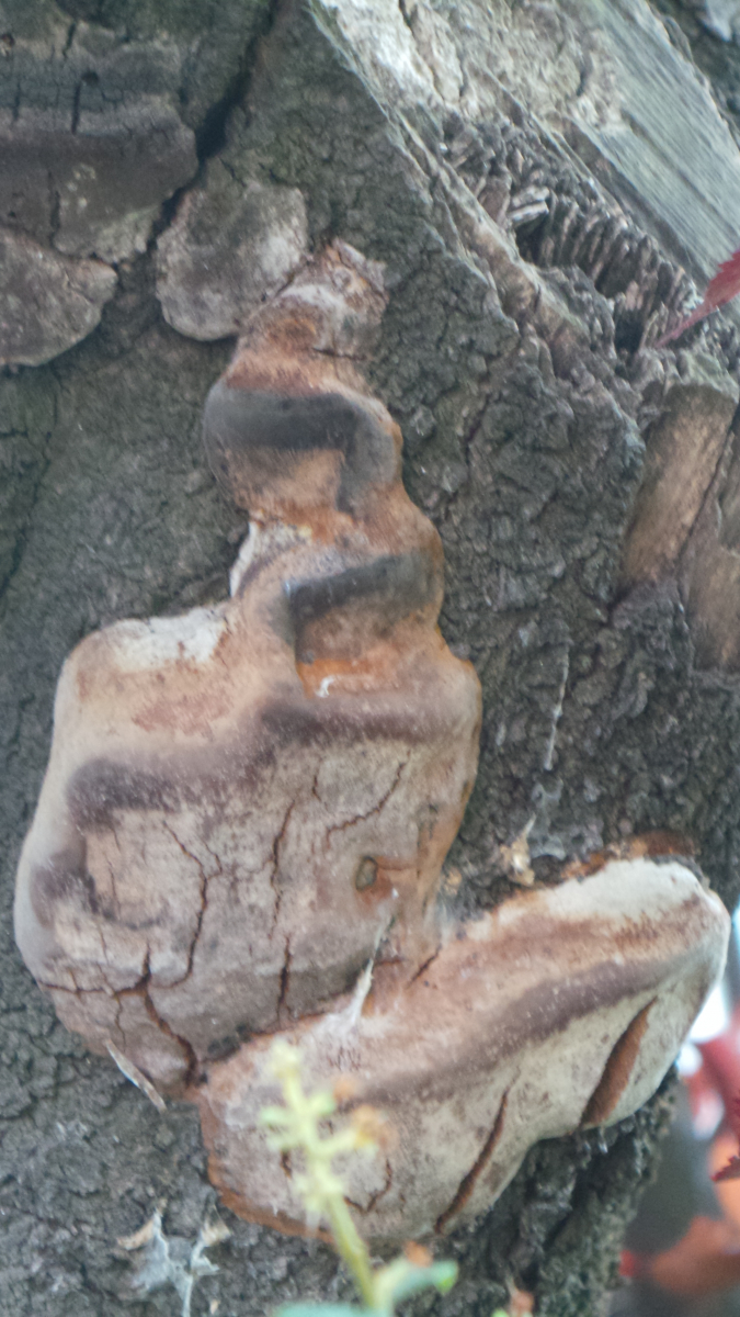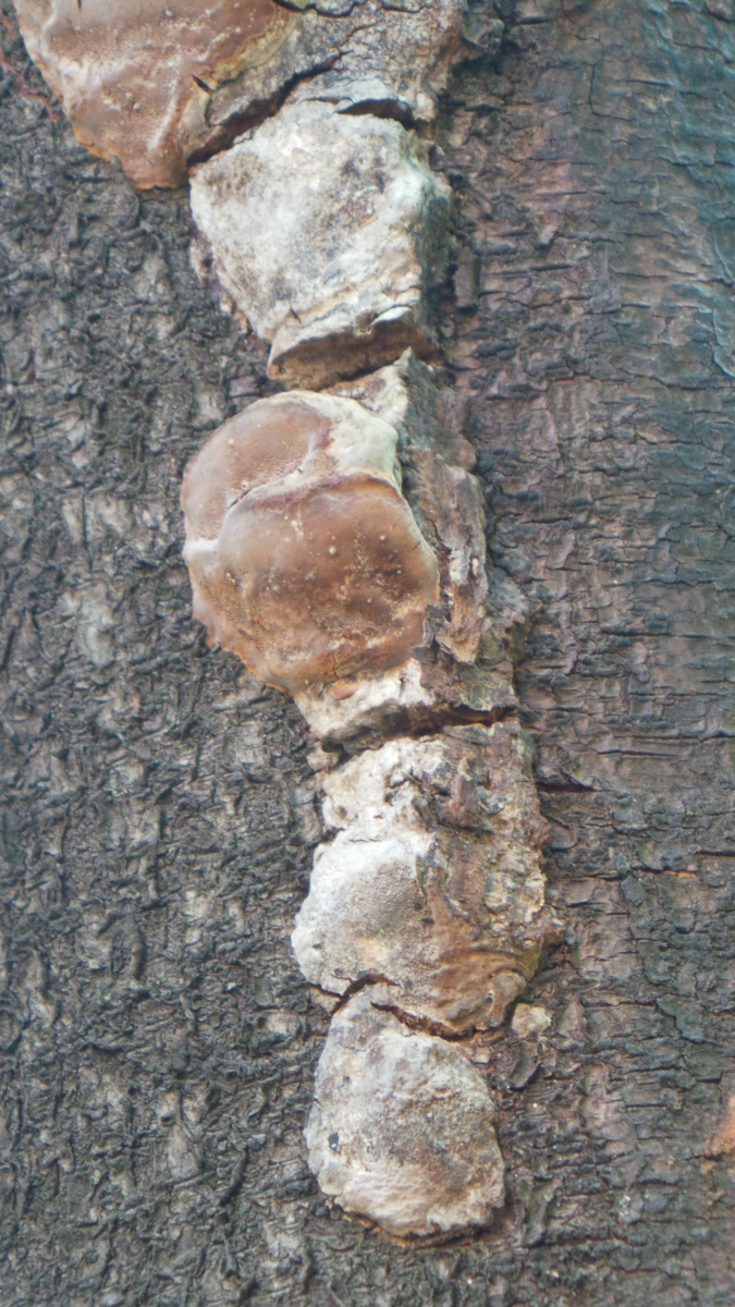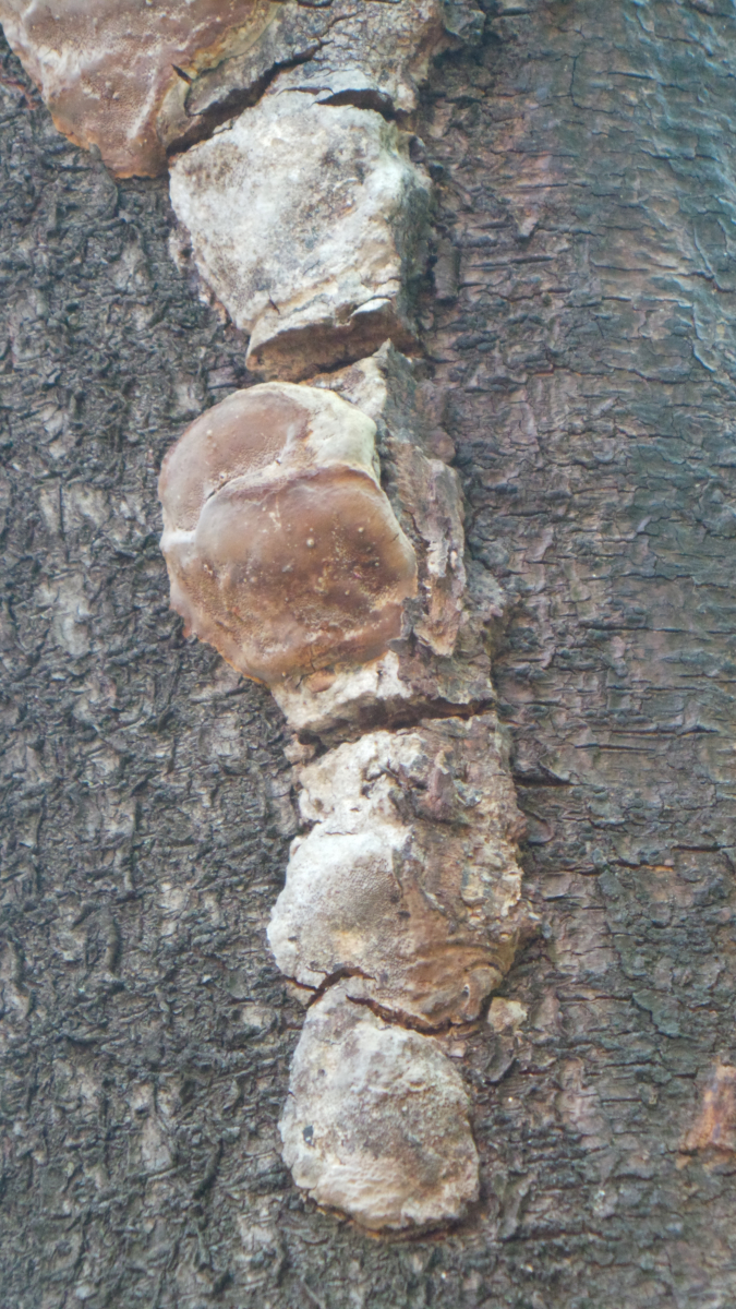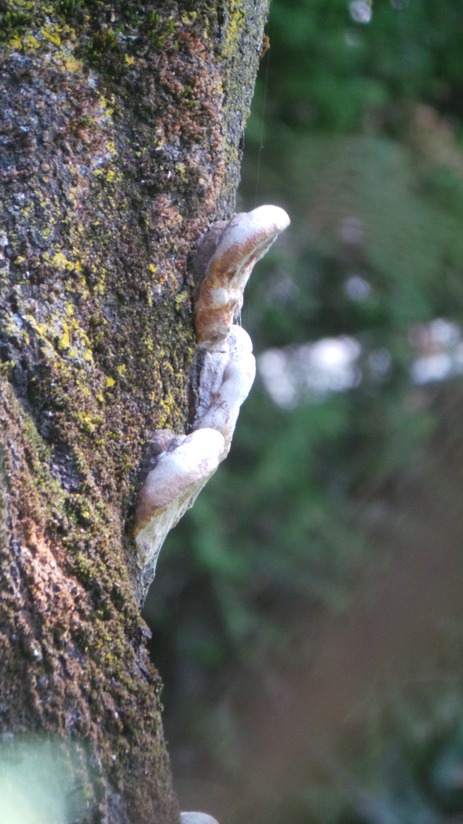 1 - 5 : Durch einen Drahtzaun und eine Hecke fotografiert, wächst vermutlich auf Kirschbaum: