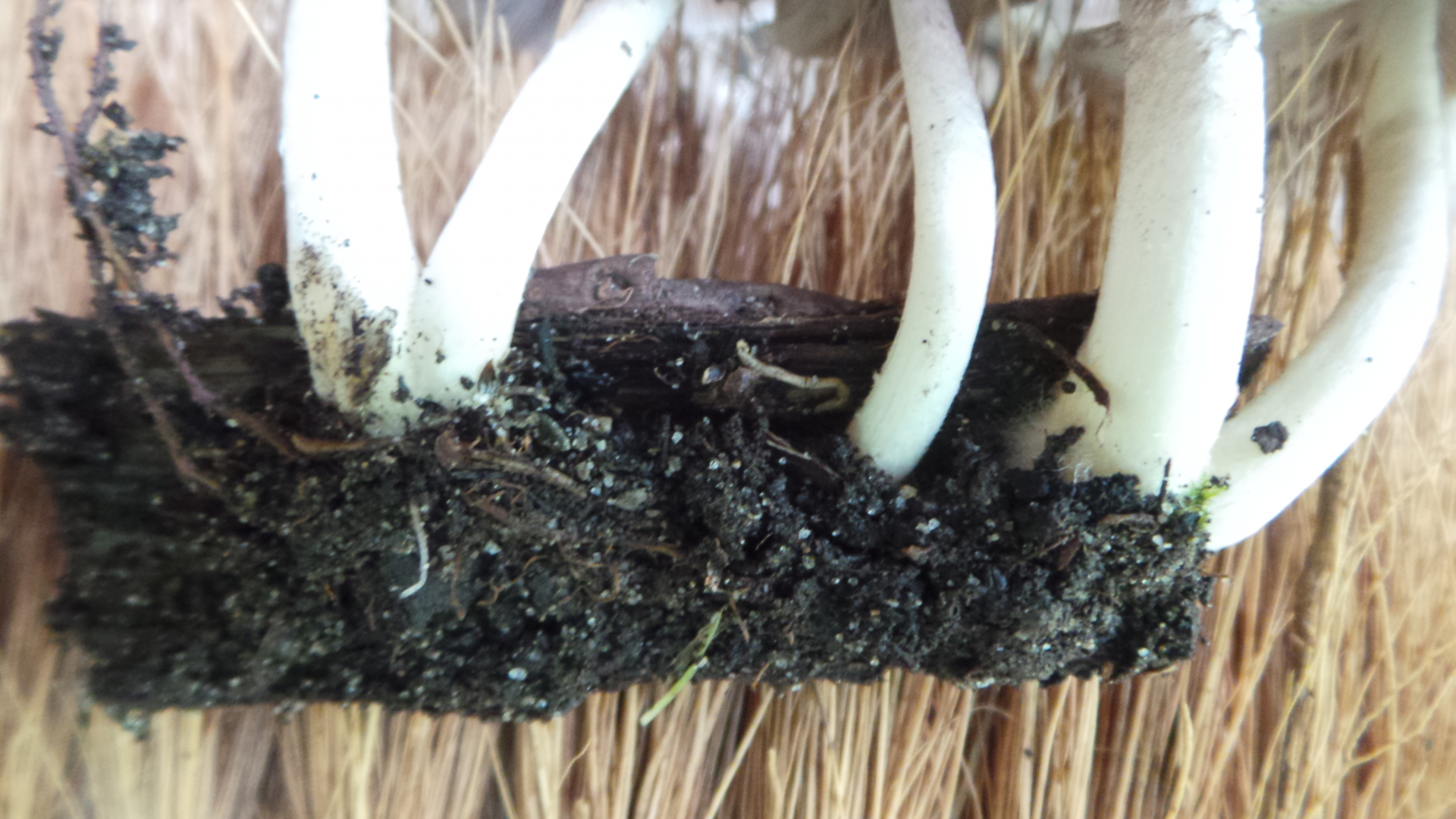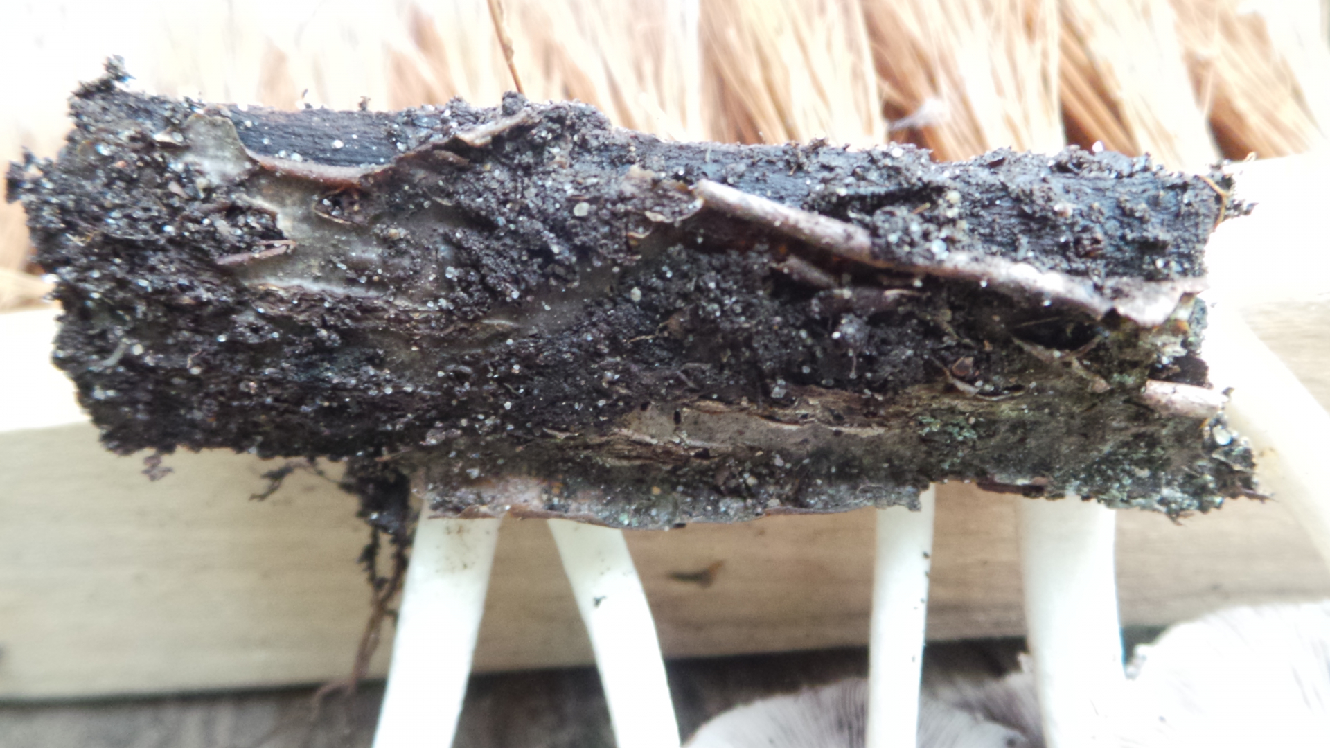 10 - 17 : Diese Halunken wachsen in einem großen Kupferkessel zusammen mit blauen Stangenbohnen, wohl auf Holzresten der Bohnenstangen des letzten Jahres. Zwei Tage später waren sie schwärzlich verflossen.