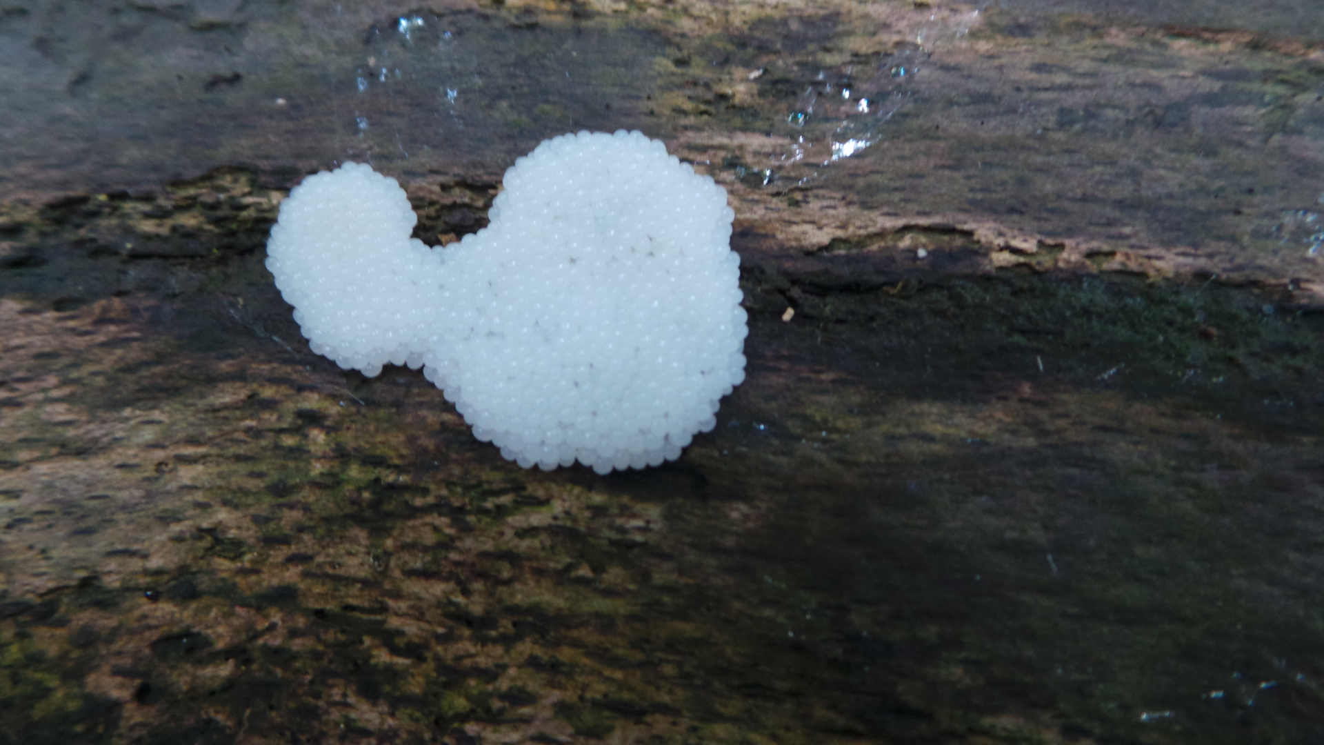 18,19 : Schneckeneier, man sieht noch die Schleimspuren. Nur was für eine Schnecke hat die Eier gelegt?