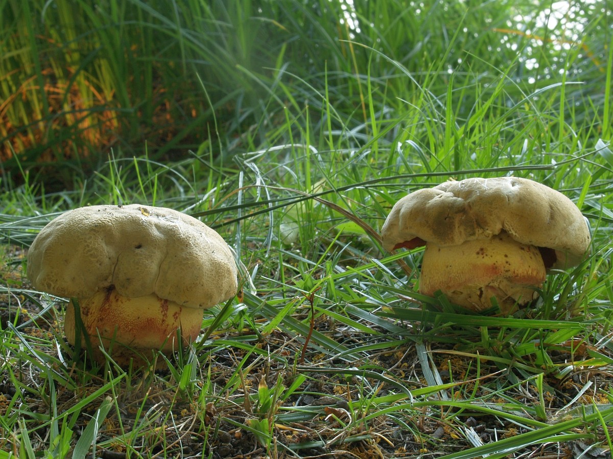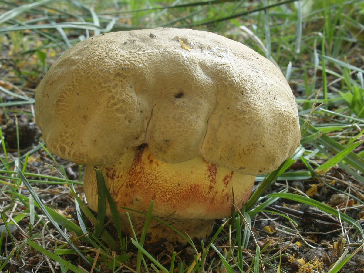 Es gibt solche "pigmentarmen" Formen von Boletus satanas, also mit recht wenig Rottönen am Stiel. Und es gibt auch einen "gelben" Satansröhrling.