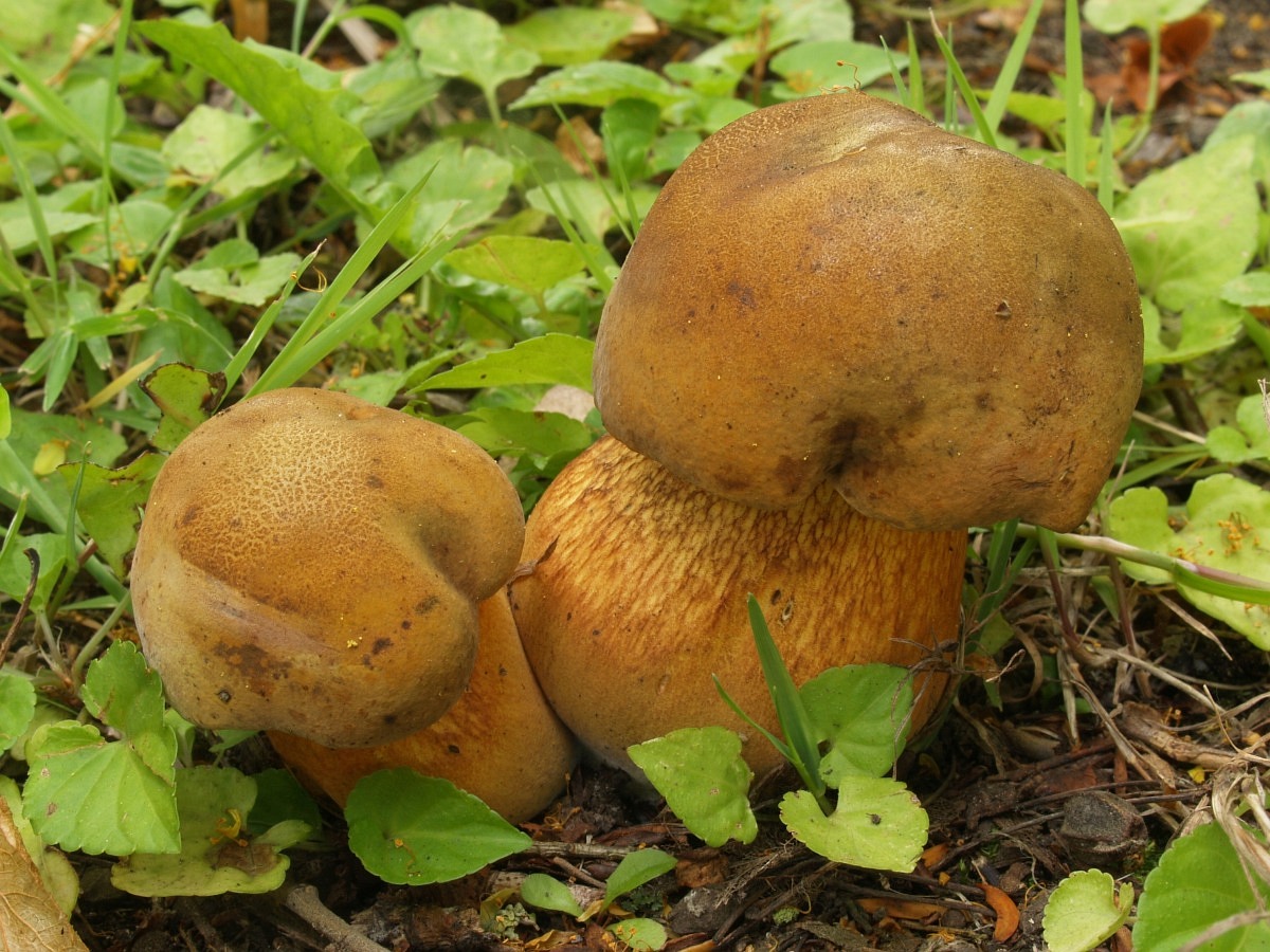 Ich gebe aber zu, die Ähnlichkeit mit depilatus, was den "gehämmerten" Aspekt der Hutoberfläche des großen Pilzes auf dem unteren Bild betrifft, ist durchaus frappierend. Mir scheint aber, wenn man die Begleitvegetation als Maßstab heranzieht, dass die Fruchtkörper eher die üblichen (kleineren) Hortiboletus-Dimensionen haben.