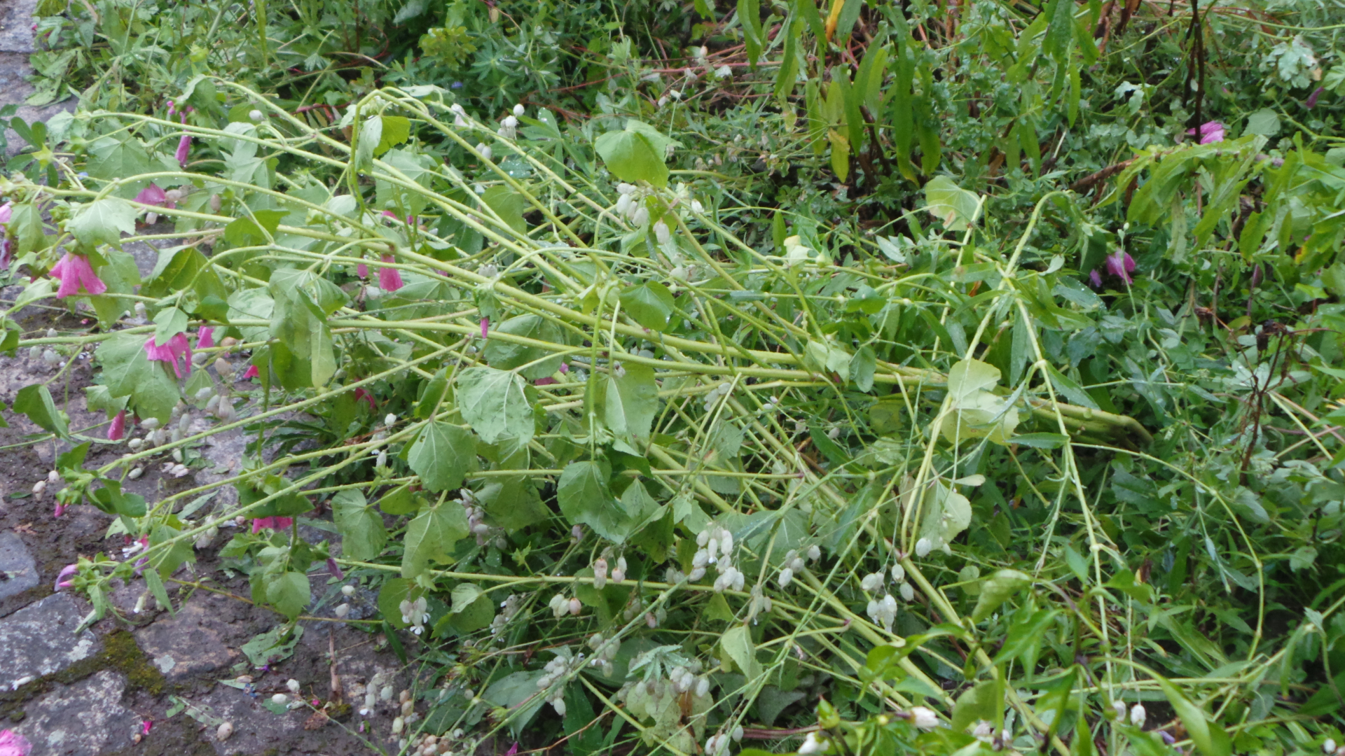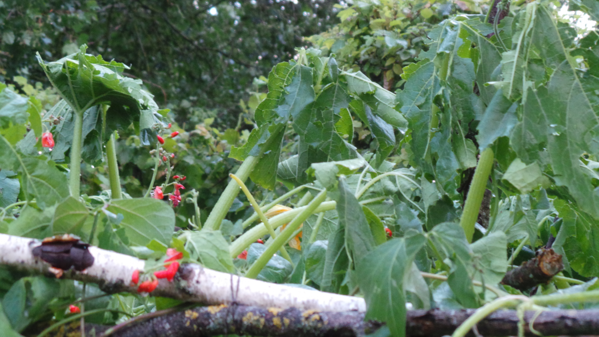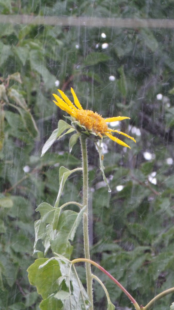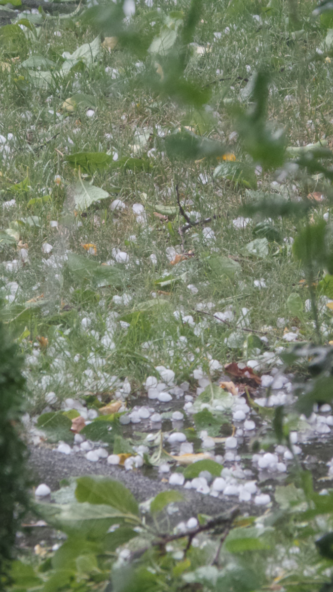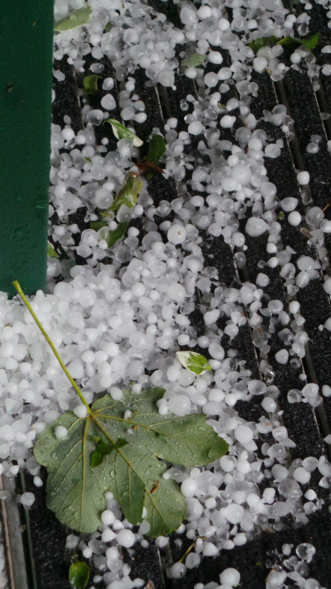 Die Hagelkörner waren gerade noch so klein, um keine ernsthaften Schäden an Gebäuden zu bewirken, aber groß genug, um die Blumenbeete, die Stauden und fast die komplette Gemüseernte abzuräumen. Als partieller Selbstversorger trifft mich das hart, nun muss ich unwillig zukaufen.