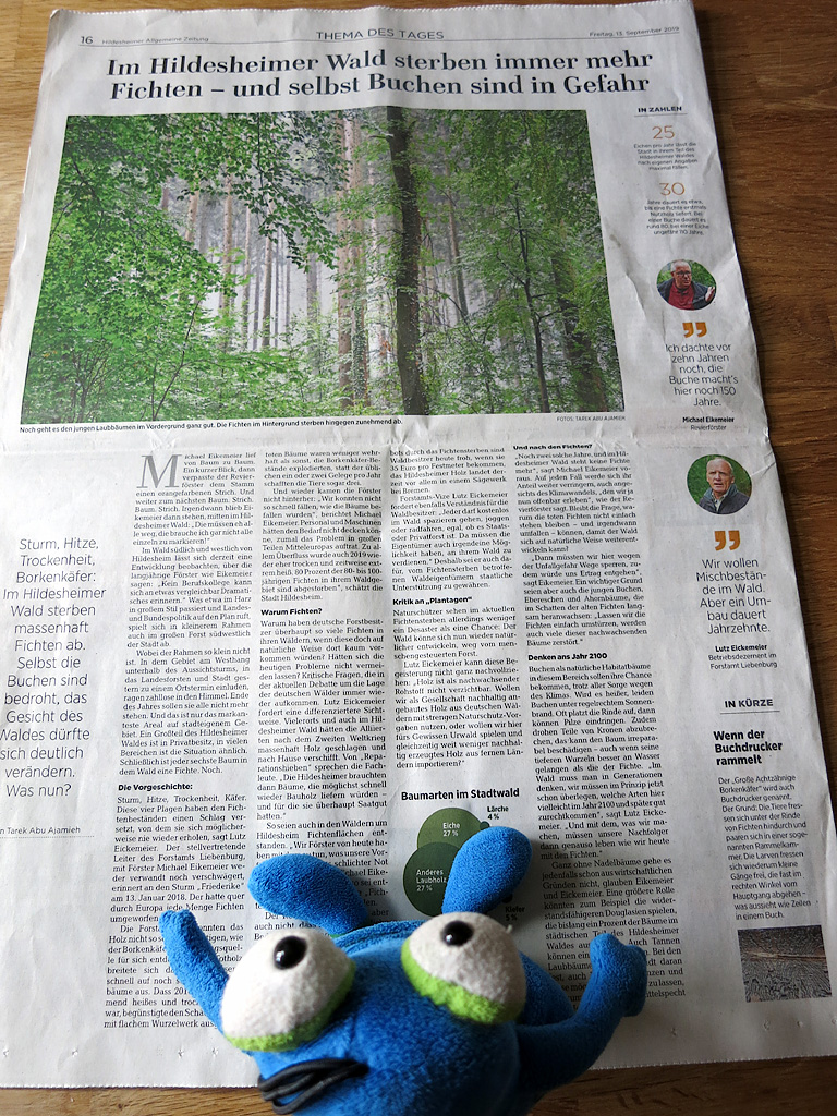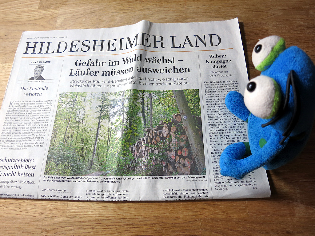 Nach der Lektüre der Tageszeitung bin ich wieder auf mein Sofa gekrochen. In den Wald traue ich mich schon nicht mehr. Die Gefahr durch abgeworfene Äste wird immer größer... Wo das hier wohl noch endet? :gkrass: