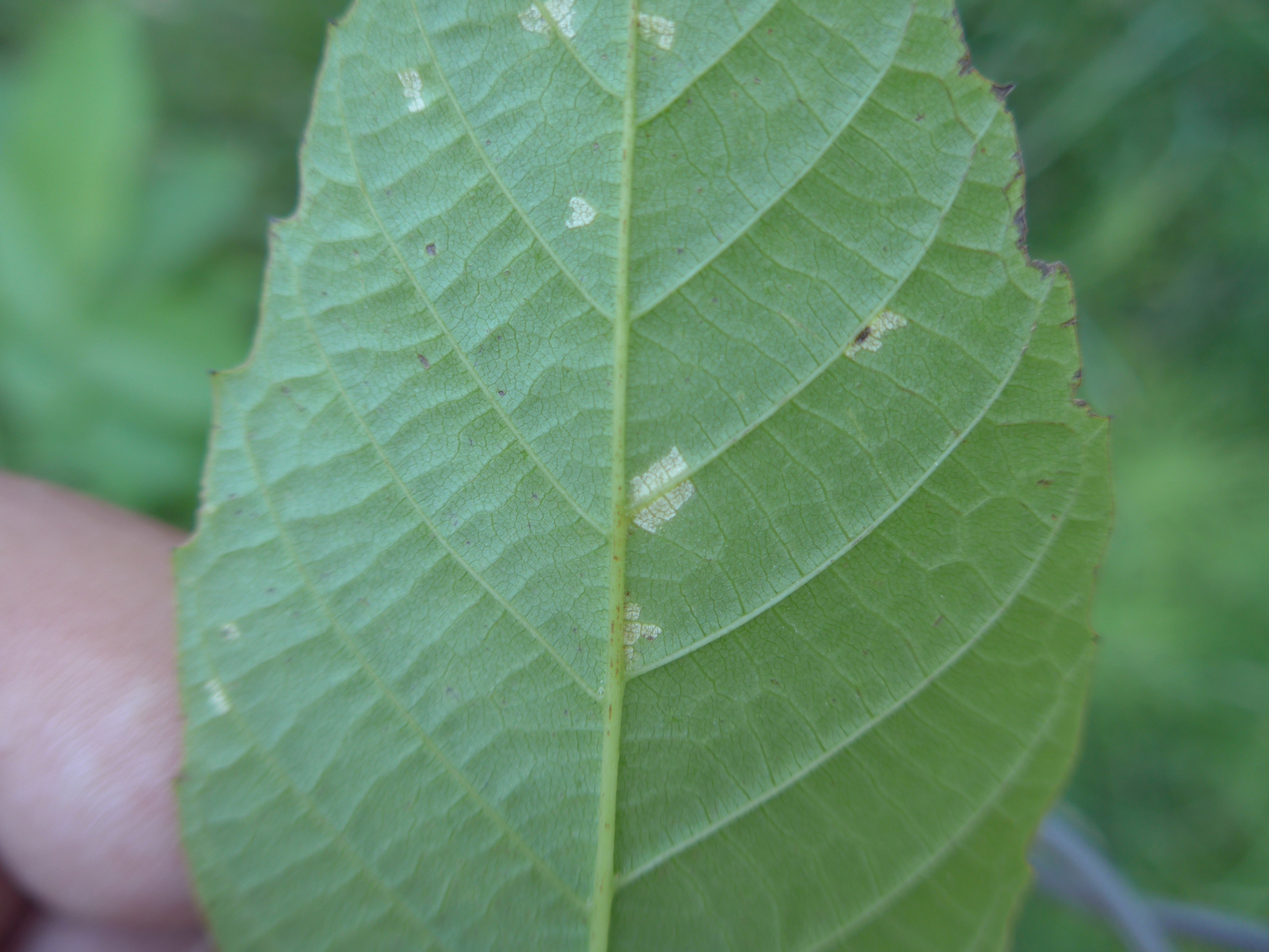 Auf unserer gestrigen Fachgruppenexkursion fielen uns mal wieder Blätter der weißen Seerose mit markant weißen Blattflecken auf. Stefan S. ging ins Wasser um ein Blatt zu pflücken. Ich habe dann das Blatt untersucht. Tatsächlich wieder der Brandpilz Rhamphospora nymphaeae. Das war schon die 2. Fachgruppenexkursion, wo wir den gefunden haben und das ist der Nachweis Nr. 5 in Sachsen. Das besondere an dem Brandpilz ist, dass die Sporen erst mit dem Abbau des Blattes freigesetzt werden analog der Gattung Entyloma. Dank nochmal an Jule für den Hinweis auf den Pilz. Ohne sie wären wir gestern nicht baden gegangen. ![]()