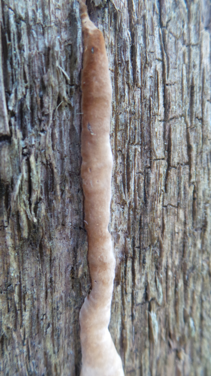 Wenn es eine Antrodia wäre (auch nicht abwegig), dann müsste es mit den Farben normalerweise eine der Arten aus dem Antrodia - malicola - Komplex sein - und da Antrodia malicola s.str. keine europäische Art ist, wohl die naheliegendste europäische Option: Antrodia kuzyana.