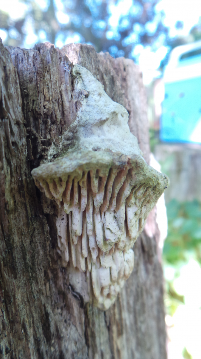Mitleid mit den Pilzen kannst du dabei ruhig haben, aber dabei kann man sich auch klar machen, daß der eigentliche Pilz im Holz sitzt. Der Fruchtkörper da außen ist nur ein Fortpflanzungsorgan. Dem Pilz tut es auch nicht weh, wenn du davon ein Stück abschneidest oder auch den gesamten Fruchtkörper abmachst.