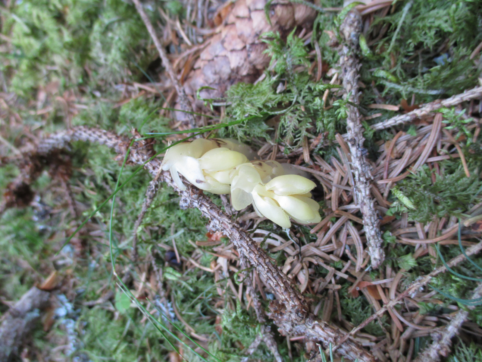 Ein paar Eierschwammerl an normalerweise feuchten Stellen, heute staubtrocken. Die Schwammerl waren von styroporartiger Konsistenz.