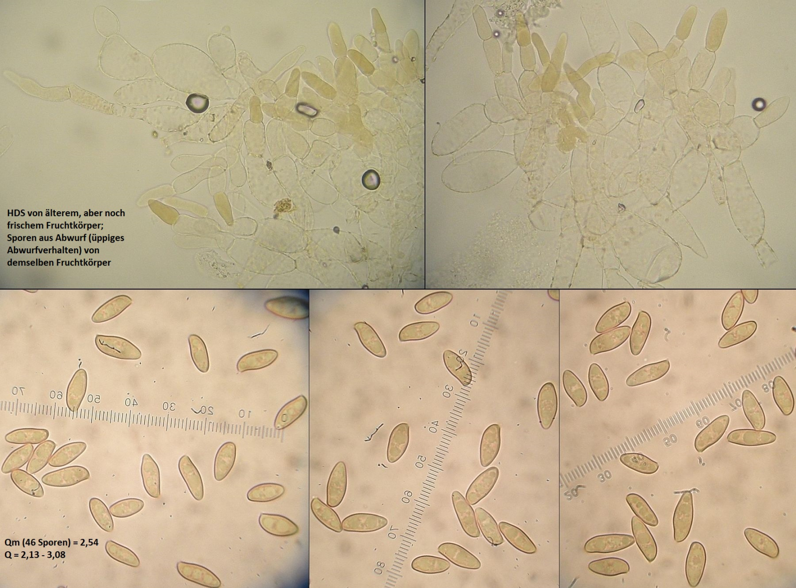 Im Vergleich dazu noch zwei Kollektionen, die für mich sehr deutliche Hortiboletus engelii sind. Man achte auch auf den deutlich anderen Sporenquotienten, der Unterschied ist schon ohne Messungen beim ersten Blick durchs Okular erkennbar. Da kommen später allerdings noch Fälle, wo es längst nicht so eindeutig ist.