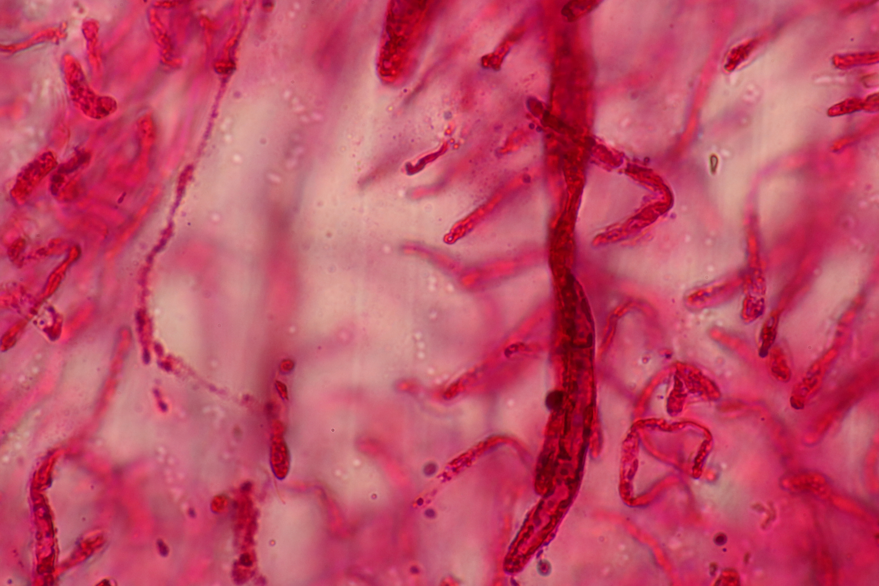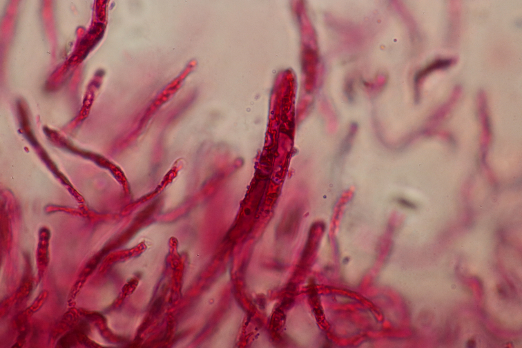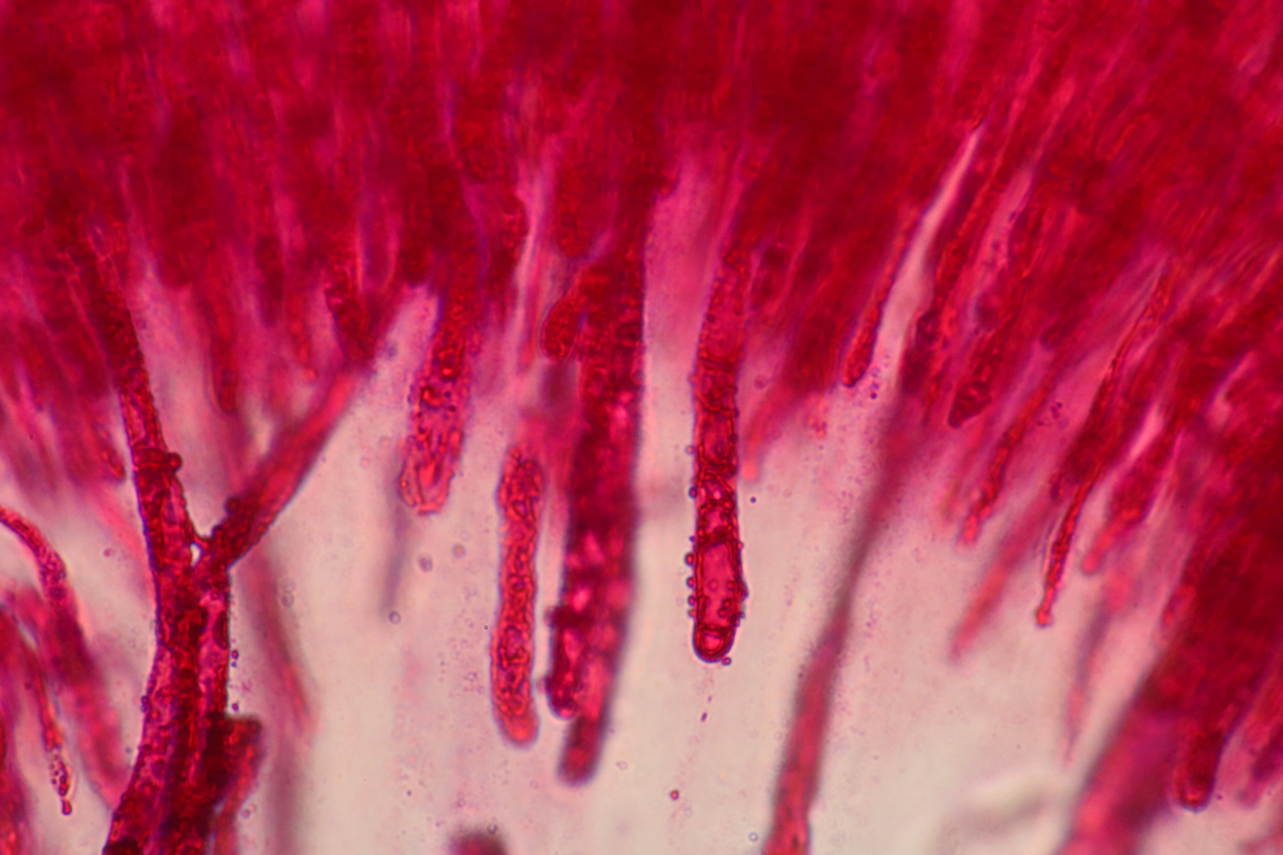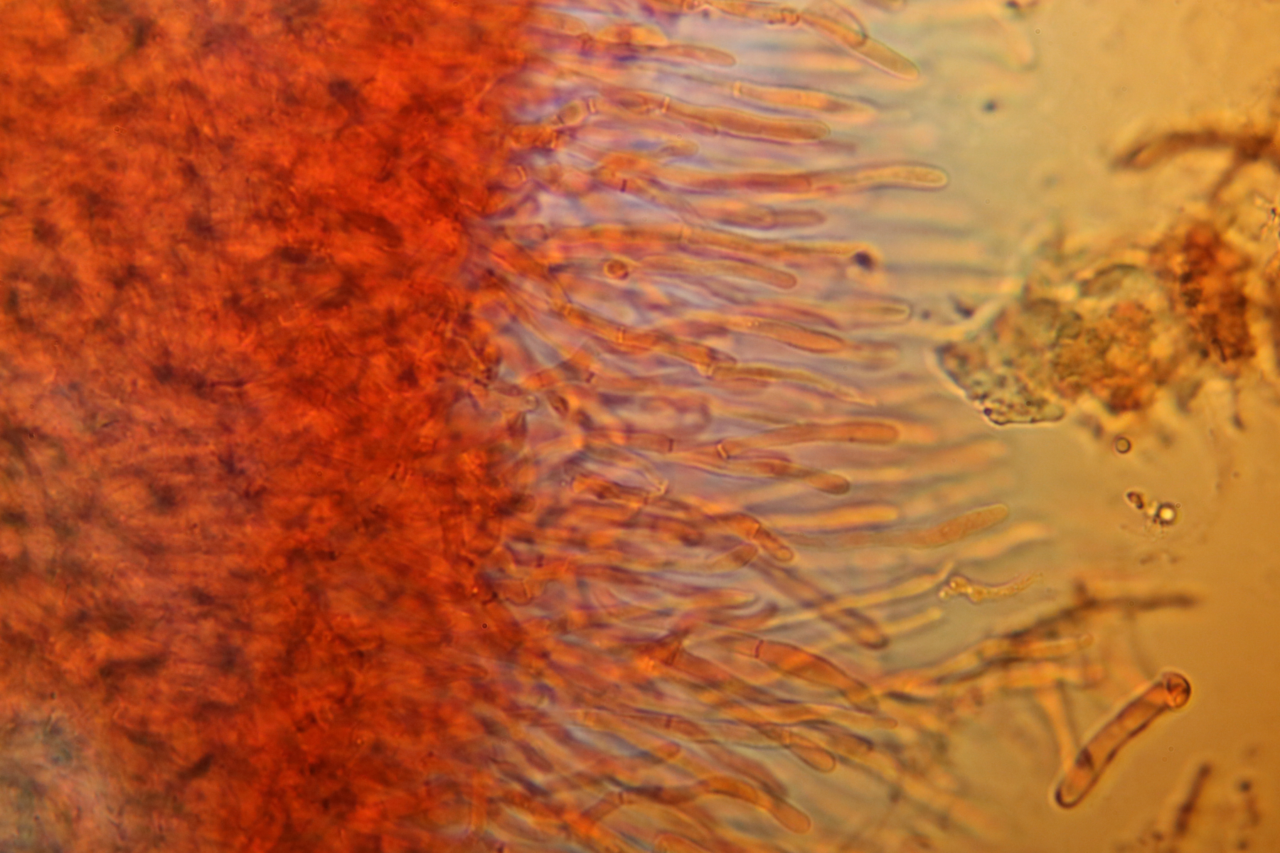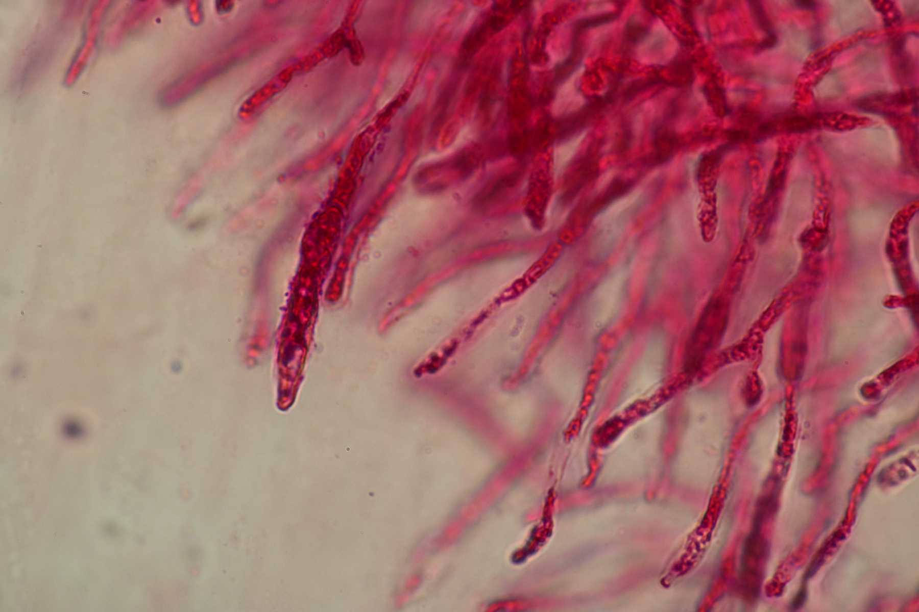 Anschließend habe ich die getrocknete Huthaut in Kongorot NH3 mikroskopiert.