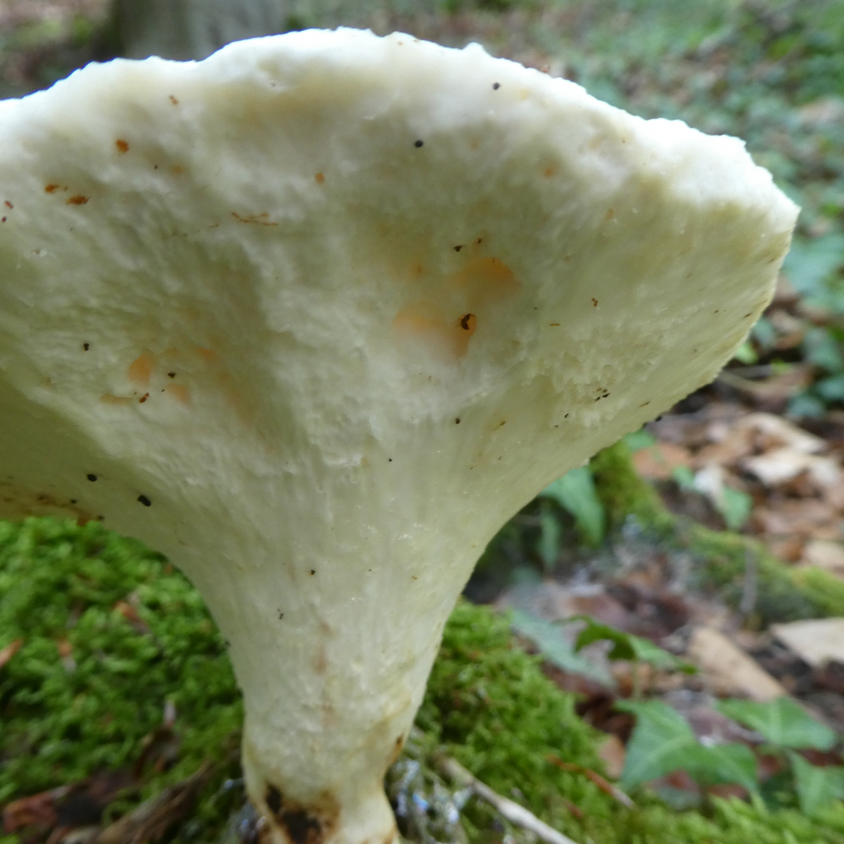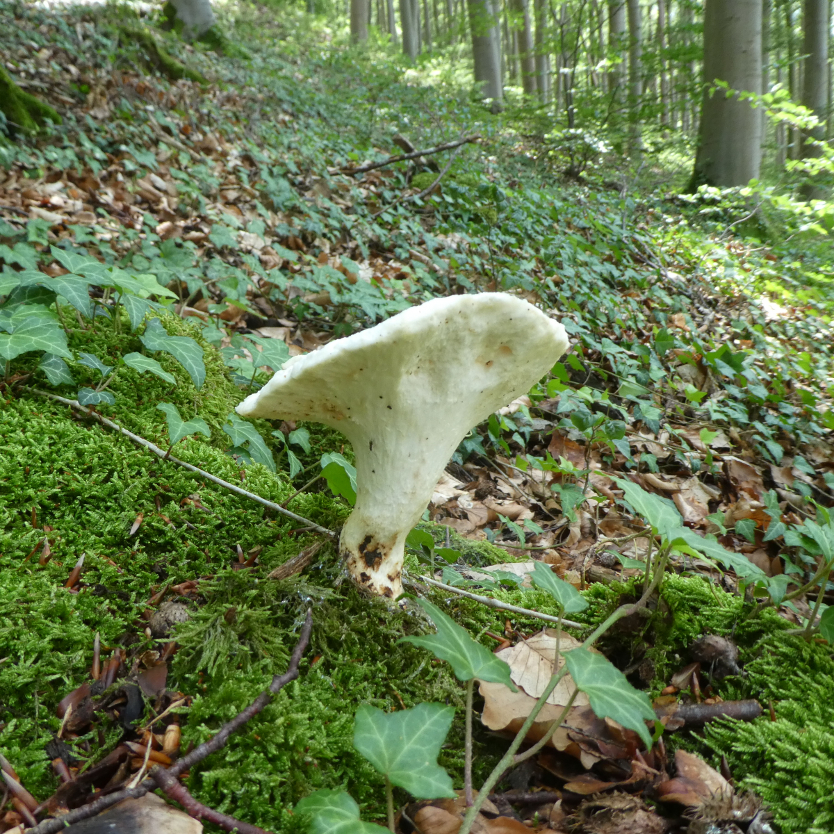 Funddaten: 14.07.2019, Altmühltal, Rotbuchenwald, auf Totholz, Durchmesser ca. 10 cm, Höhe ca. 15 cm, gestern kein Geruch - heute meine ich so etwas wie Anis zu riechen (aber mein Geruchssinn ist nicht der Beste), sehr hart und zäh - war kaum zum durchschneiden, die Hutoberfläche ist hart und irgendwie runzelig aber in meinen Augen nicht schuppig.