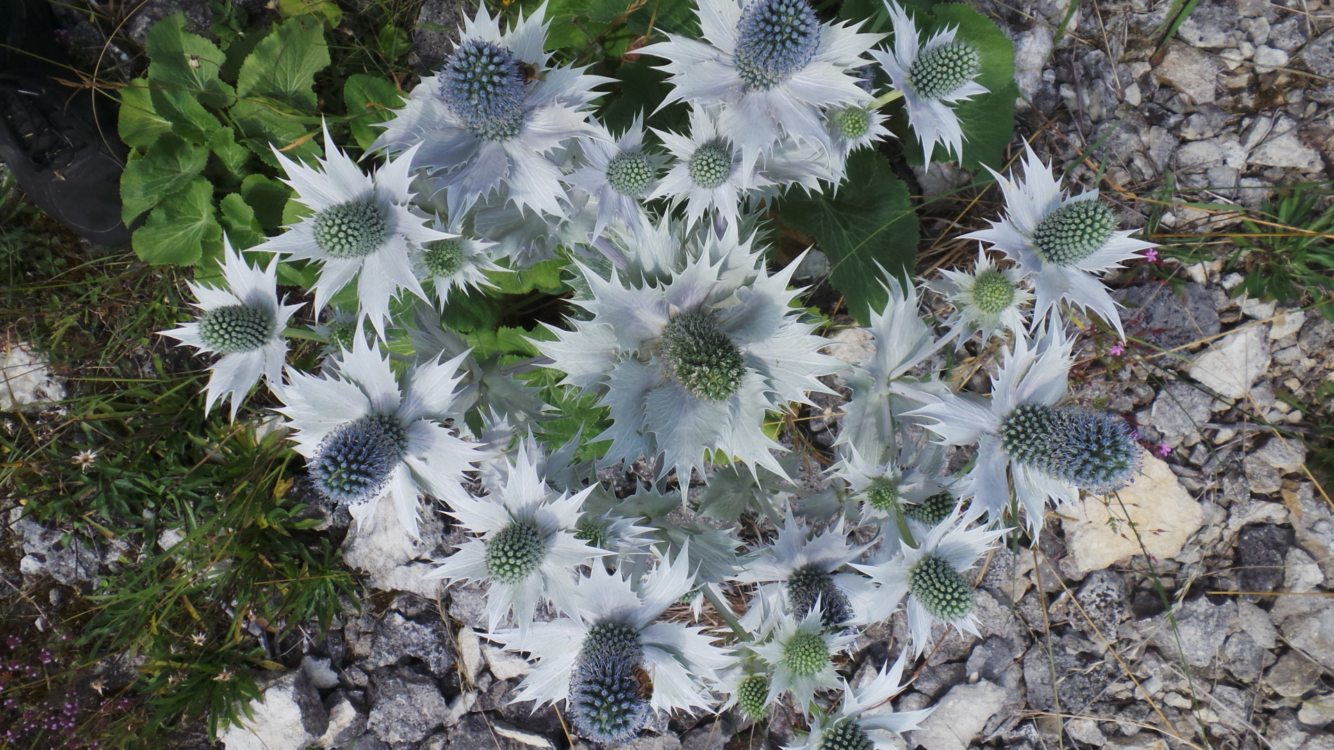 Mittlerweile vermute ich, dass es sich um kleinere Exemplare des Riesenmannstreus (Eryngium giganteum) handelt.