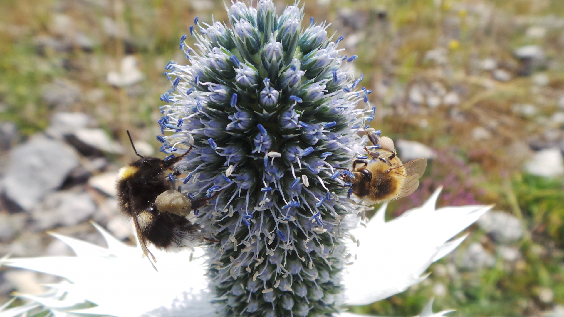 Hier nochmals mit Hummel und Wildbiene, die beiden waren, wie man erkennen kann, schon sehr fleißig:
