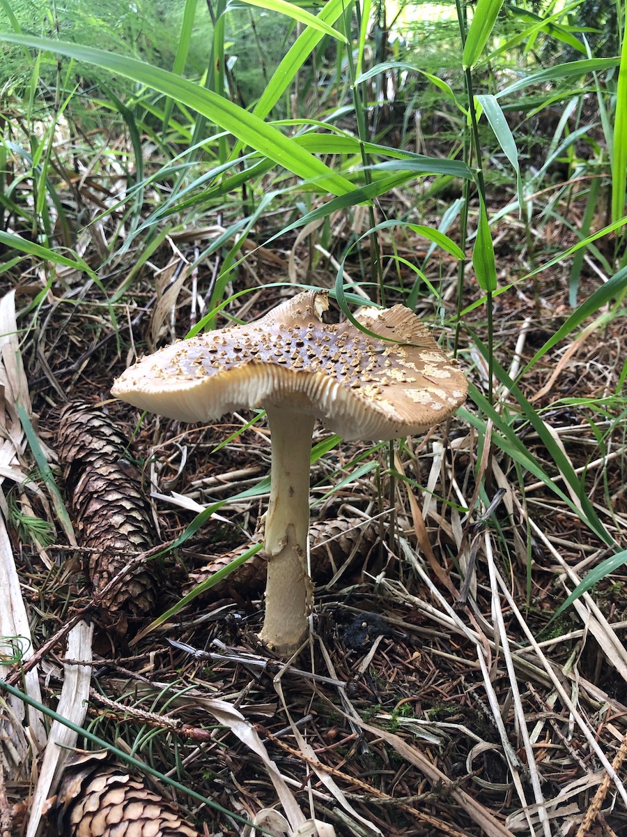 Es gab ein paar Perlpilze, darunter sogar verwertbare. Im Gegensatz zu den aus ästhetischen Gründen hier nicht abgebildeten Schneckligen Apfeltäublingen. Davon fand ich viele Reste. Aber so gründlich sind die Schnecken sonst nicht im Verputzen von Pilzen. Foto hätte wirklich nicht gelohnt.