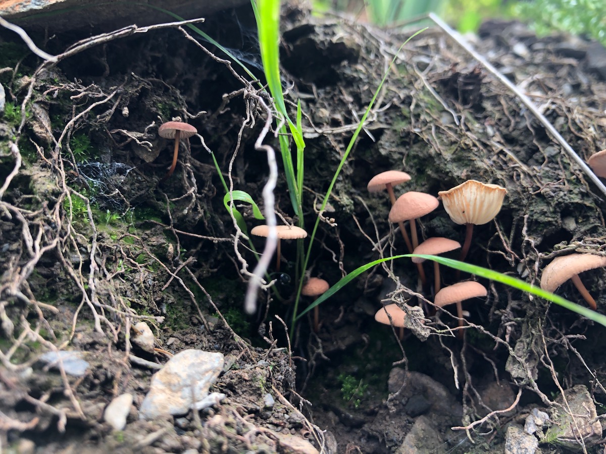 Abschließend noch ein paar Kleine Hellbraune an Holz aus dem Garten - an der Stelle, wo ich gegossen hatte. Leider waren sie verdunstet, als ich sie heute genauer anschauen wollte, einfach weg. Also haben wir nur Pilz von oben...