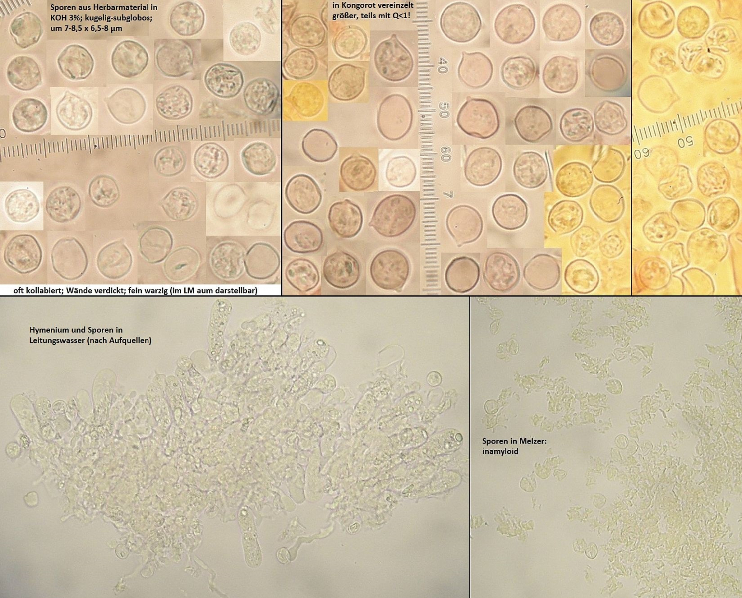Die Sporen sind inamyloid und auch nichrt dextrinoid und messen 7,25-8,5 x 6,25-7,5 µm; Q = 1,0-1,2.