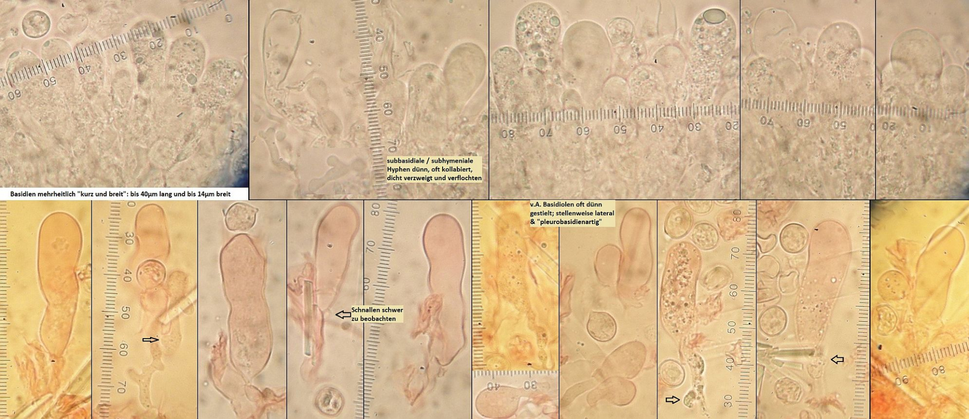 danke für's Verschieben! Die Basidienbasen muss man wirklich sauber rauspräparieren, dann ist es sehr auffällig. Hast du das Paper von Ghobad-Nejhad & Kotiranta (2007)? Da wird es sehr schön dargestellt.