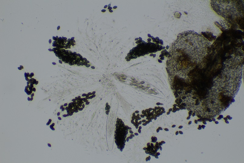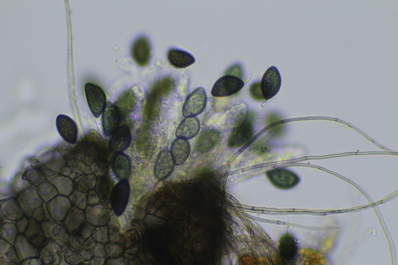 Asci: 4-sporig (65.3) 65.4 - 65.8 (66.3) × (12.8) 13.5 - 15 (17.3) µm (waren nicht komplett sichtbar)