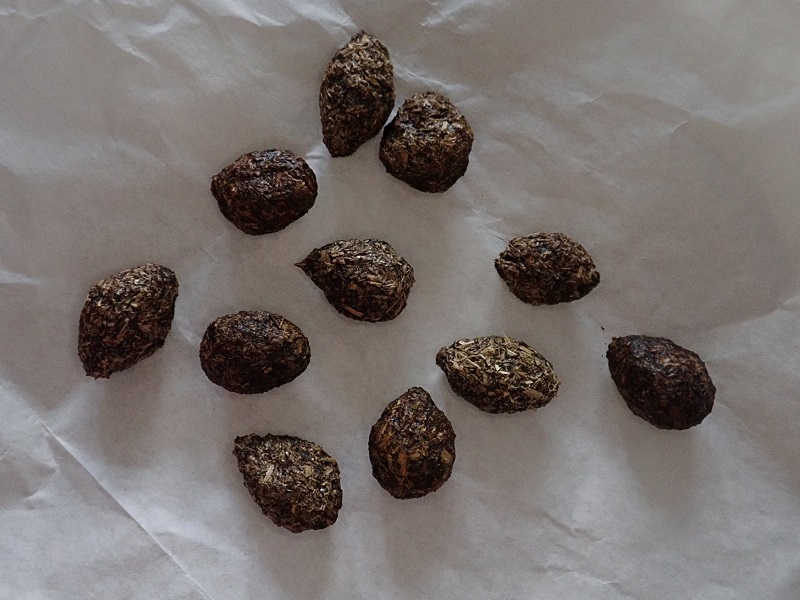 Ende Mai hab ich auf 1500 m NN ein paar Hasenhinterlassenschaften aufgesammelt, die vermutlich schon im Schnee gelegt wurden.