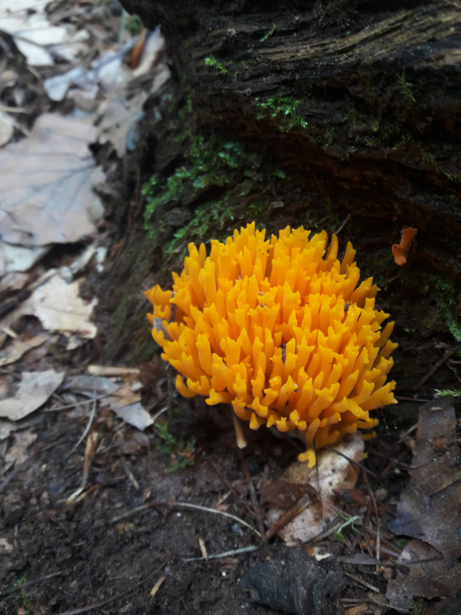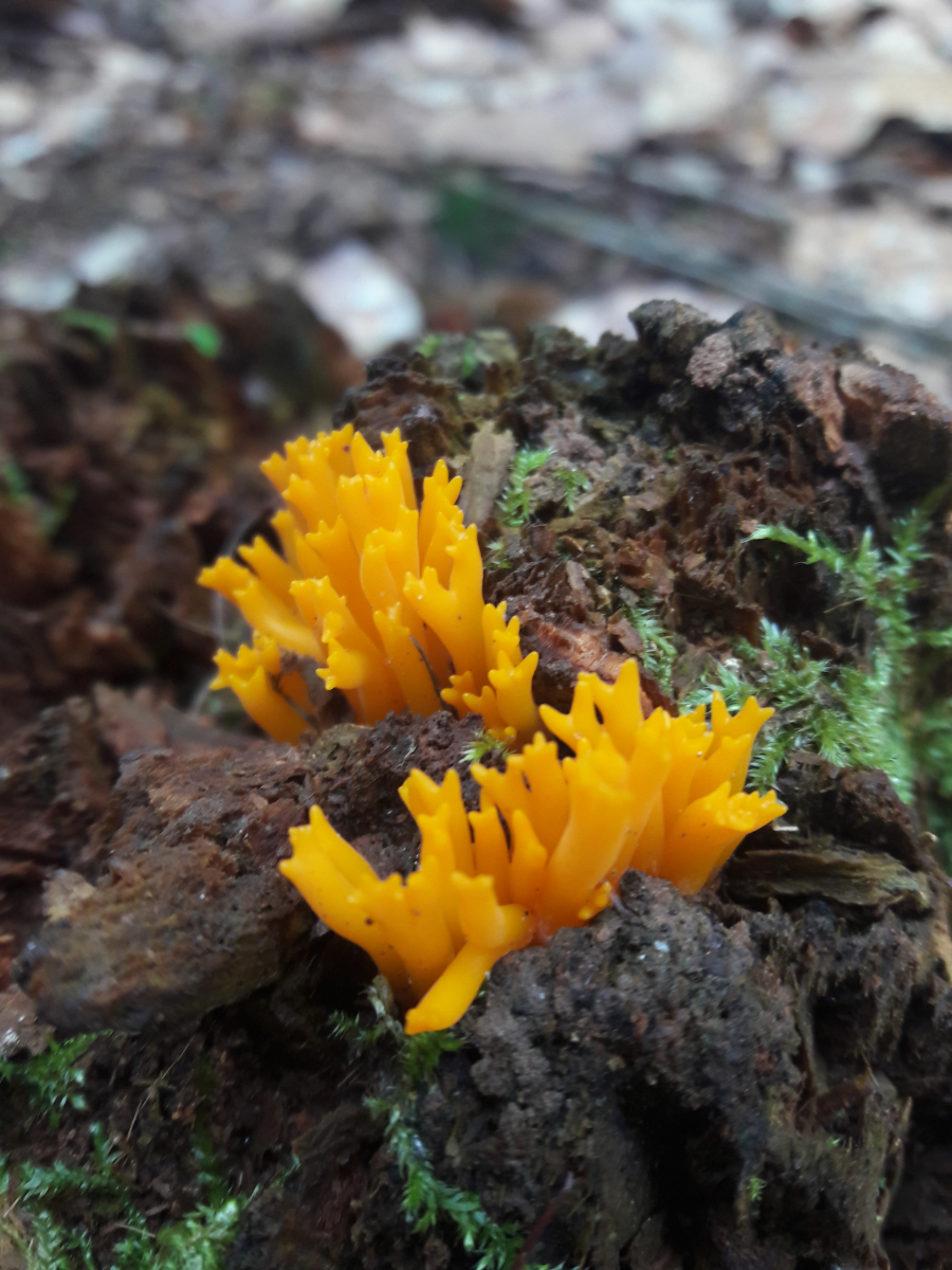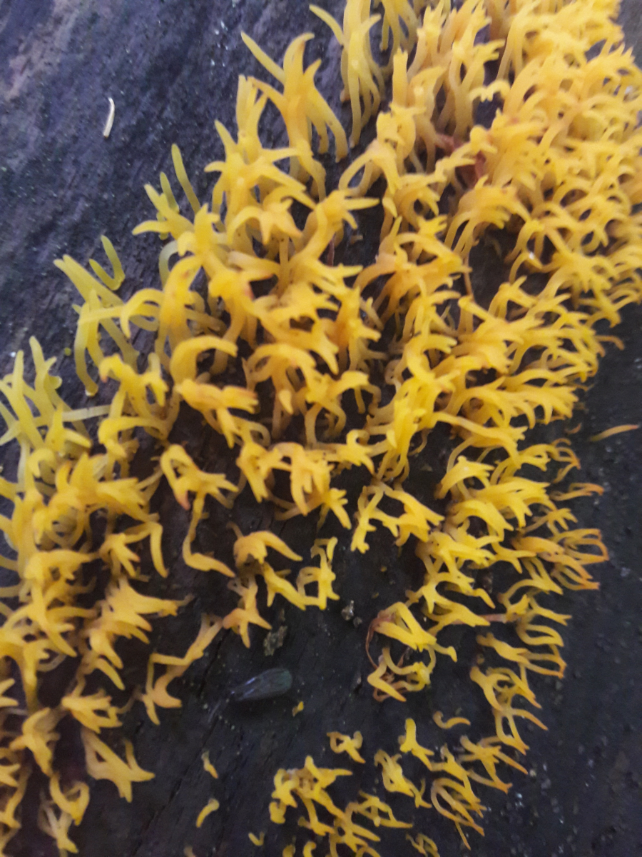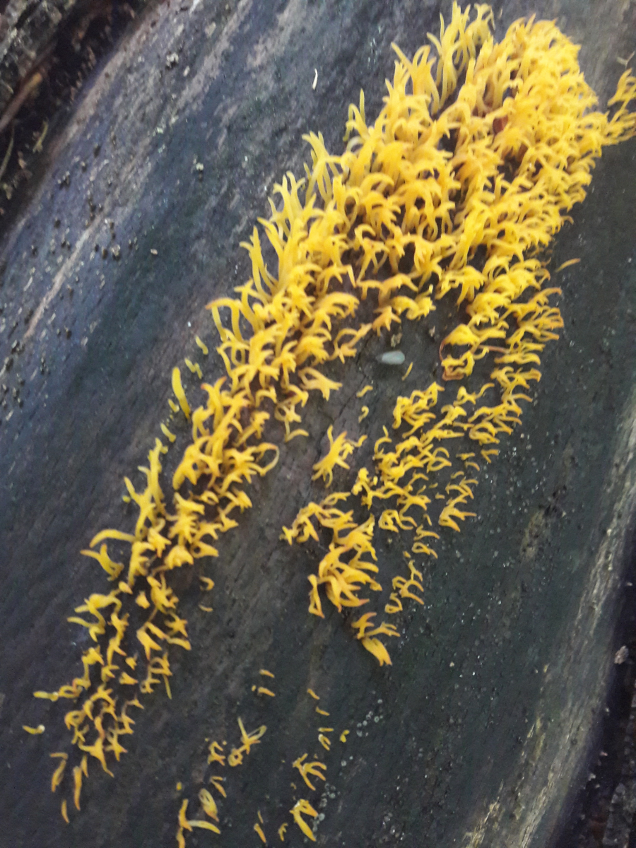 3. Gelb ging es dann weiter. Ich vermute, dass ist der Laubholzhörnling (Calocera cornea)