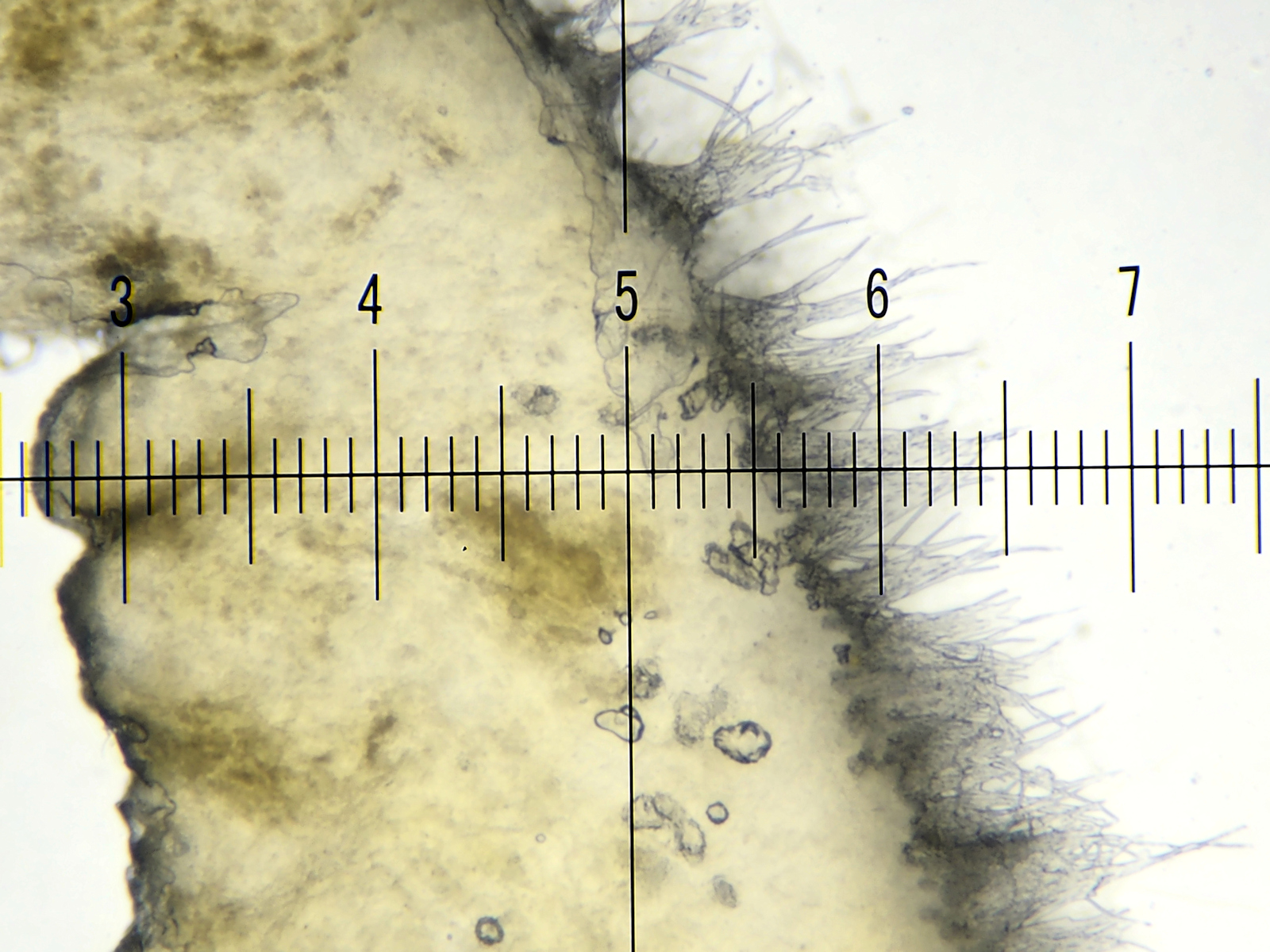 Zum anderen hat mein Pilz ein fein teilnetziges Sporen Ornament, dagegen soll L. vellereus ein netzartiges Ornament haben.