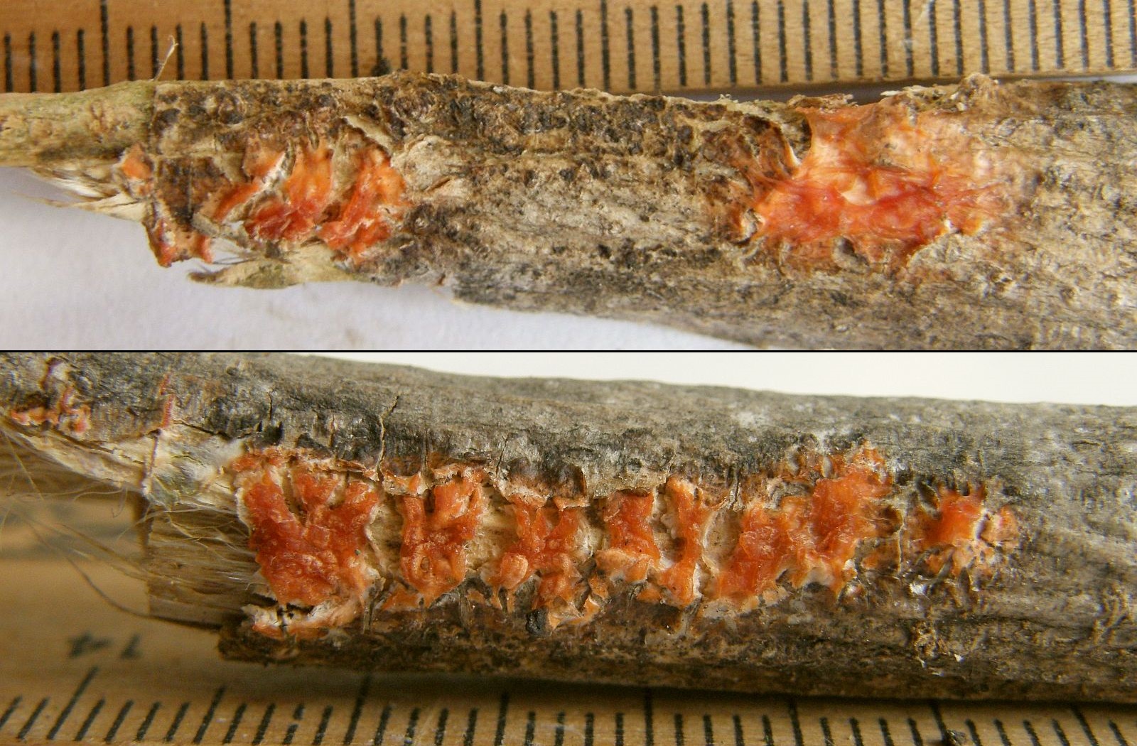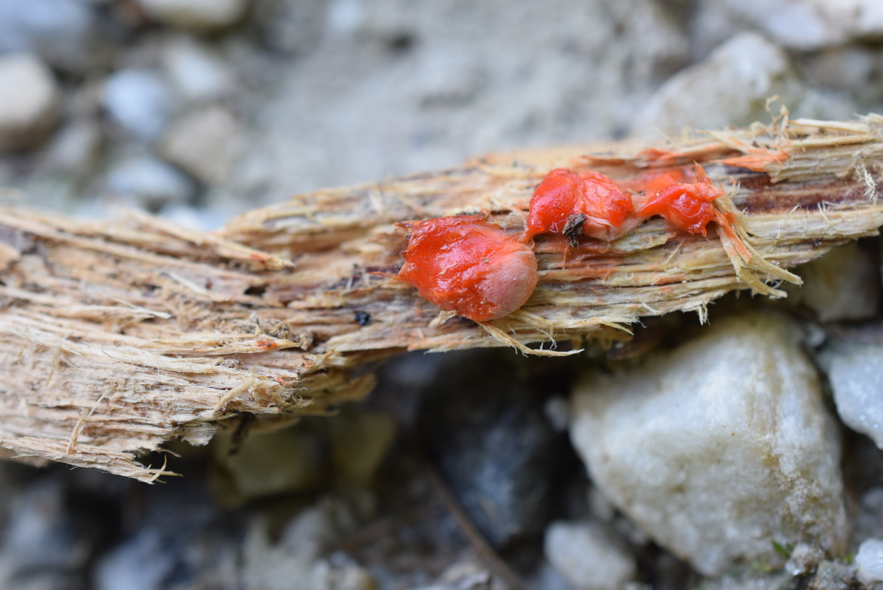 Rote Frk. an liegende Vermorschte dünne Fichte . Fundort Rauriser Tal AT ca 1600 m ü NHN ,junge Fichtenwald , Pilze sind an Schattigen Ort gefundene , Feuchtigkeit Optimal , kein Trockenheit . Kein Geruch gefunden . KOH 5 und 20% keine Reaktion absolut nix .