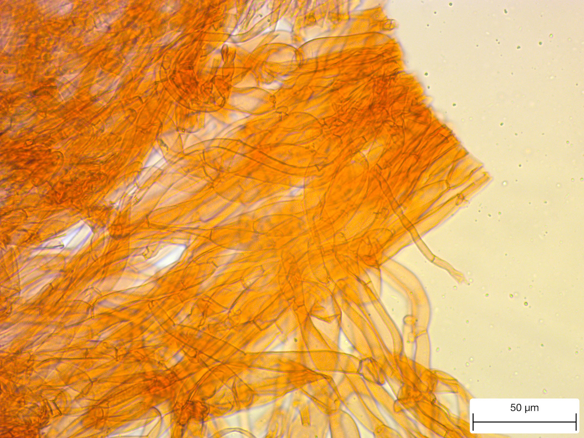 Dann bitte nie Risspilze mit metuloiden Zystiden in Kongorot mikroskopieren, bitte nimm 3%iges KOH oder Ammoniak. Bei einigen Arten verfärben sich die Wände unter Laugen gelblich und das ist ein wichtiges Bestimmungsmerkmal. Hilfreich ist auch die Sporenfarbe unterm Mikro. So sind die nicht mehr richtig zu erkennen.