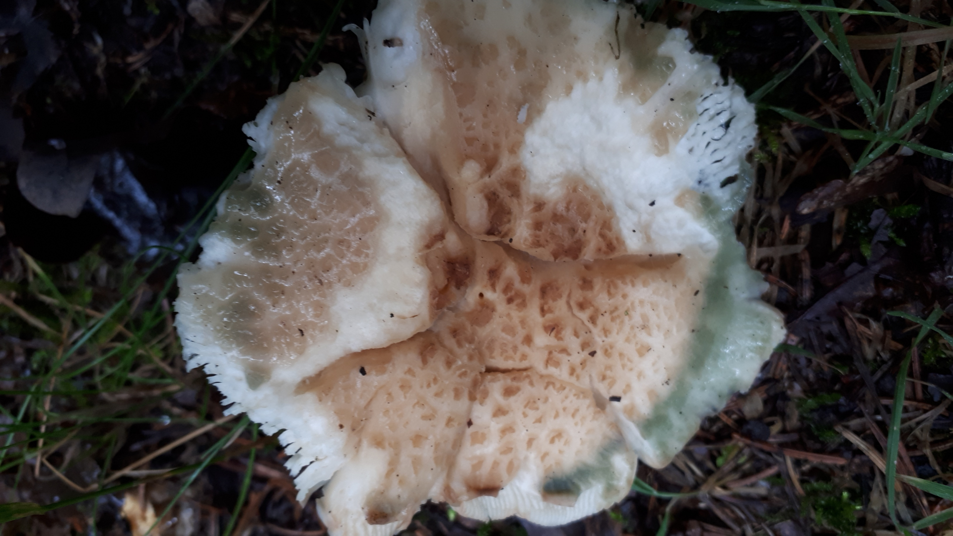 das hatte ich ja geschrieben - die Lamellen sind bei Russula cutefracta so weich wie beim Frauentäubling (gleiche Konsistenz). Und auch ja, der Bereich in der Hutmitte, wo das Grün ausgeblasst ist, passt auch auf R. virescens (hatte ich ebenfalls geschrieben) ;-). Deshalb denke ich ja ebenso an diese Art. Ich wollte nur die Zusatzinfo geben, dass weitere Arten eine so aufgerissene Huthaut haben können (und ebenfalls grün sein können).