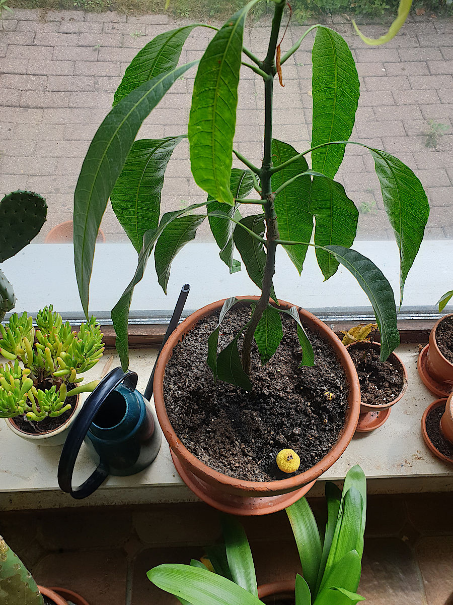 Ich habe eine Mango-Pflanze aus einem Kern großgezogen, und letzten Herbst habe ich sie das letzte Mal umgetopft, in einem Gemisch aus mehreren Erden aus dem Baumarkt, die ich quasi zur "Reste-Verwertung" in den Topf gegeben habe. Und jetzt sprießen dort auf einmal bislang zwei Pilze: ![]()