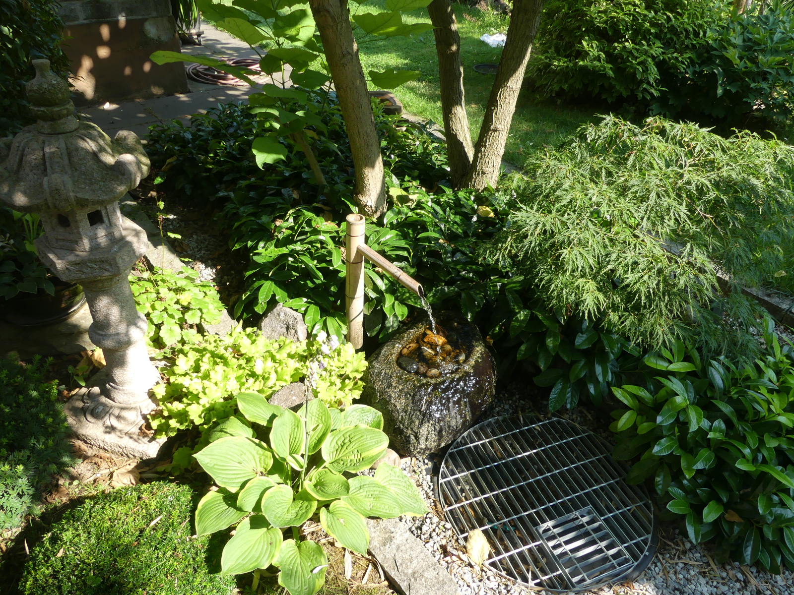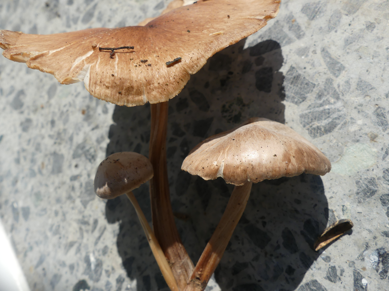In unmittelbarer Nachbarschaft wachsen ein Trompetenbaum und Kirschlorbeer, der Wuchsort des Pilzes ist - bedingt durch die unablässigen Wasserspritzer vom Brunnen - sehr feucht. Der Schlitzahorn rechts im ersten Bild dürfte als Mykorrhiza-Partner ausscheiden, weil er in einem Topf wächst.