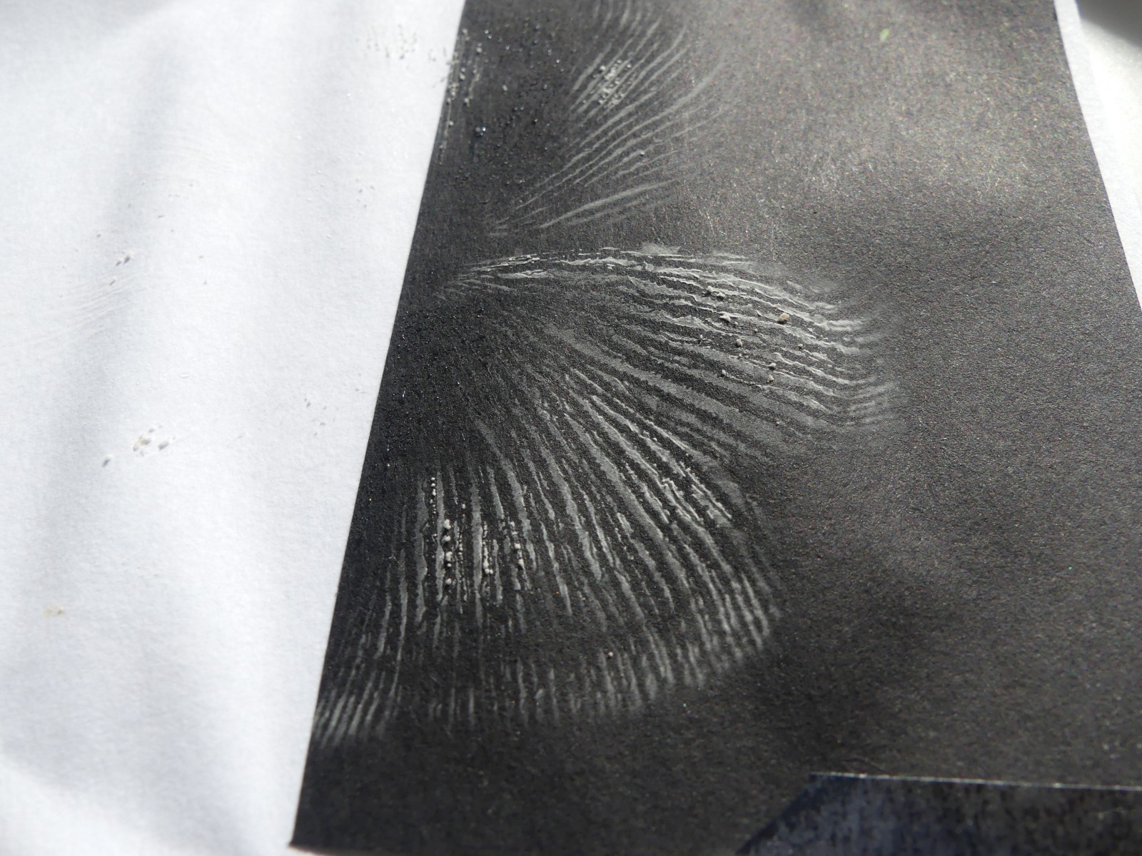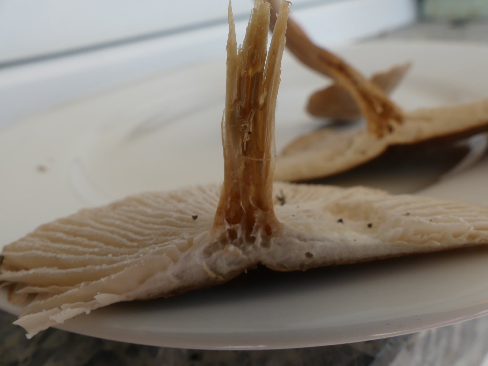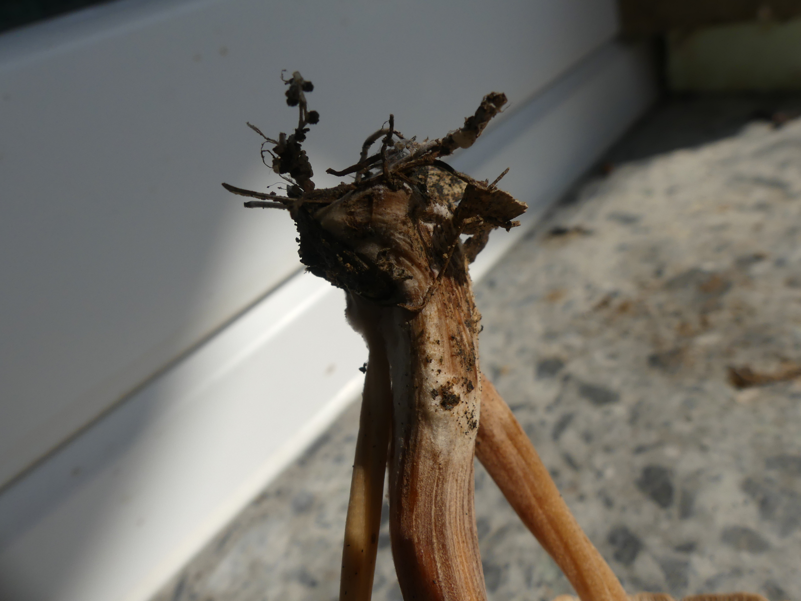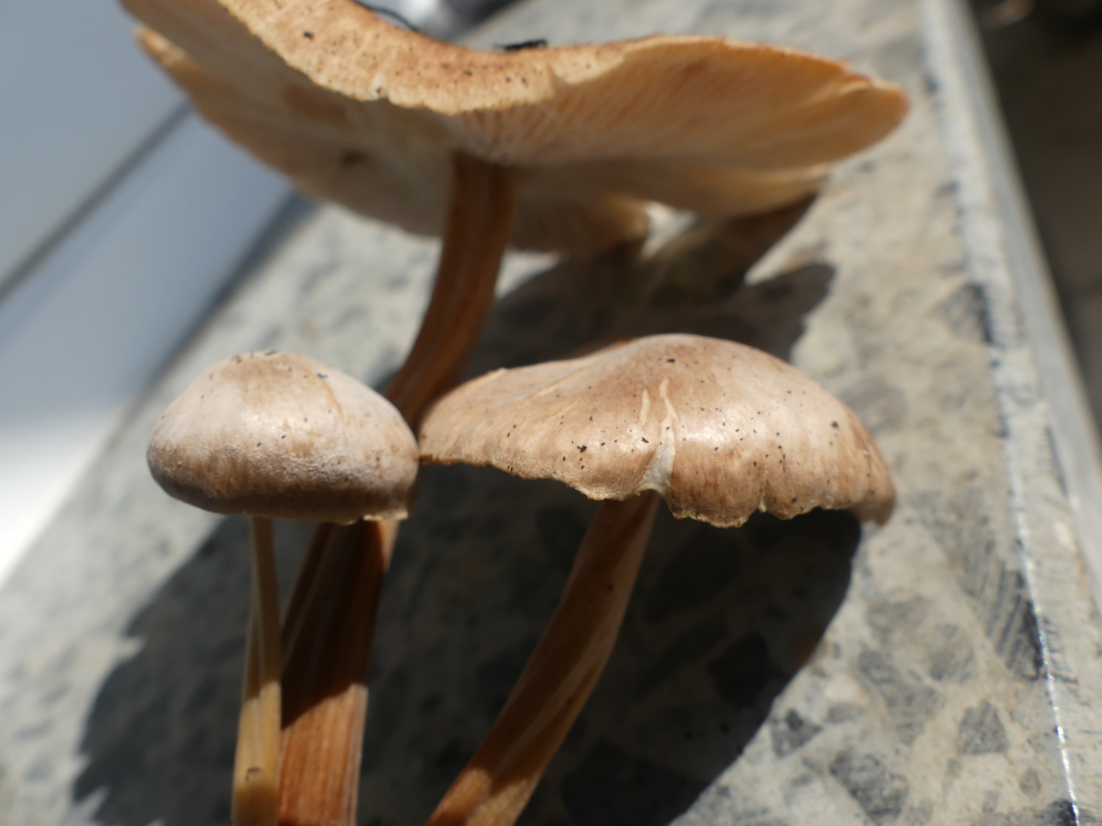 So sehen die drei Exemplare von unten aus. Sehr markant, wie ich finde. Die sehr stark ausgeprägte und verdrehte Längsrillung der Stiele zusammen mit der markanten Struktur der Lamellenschneiden finde ich bemerkenswert.